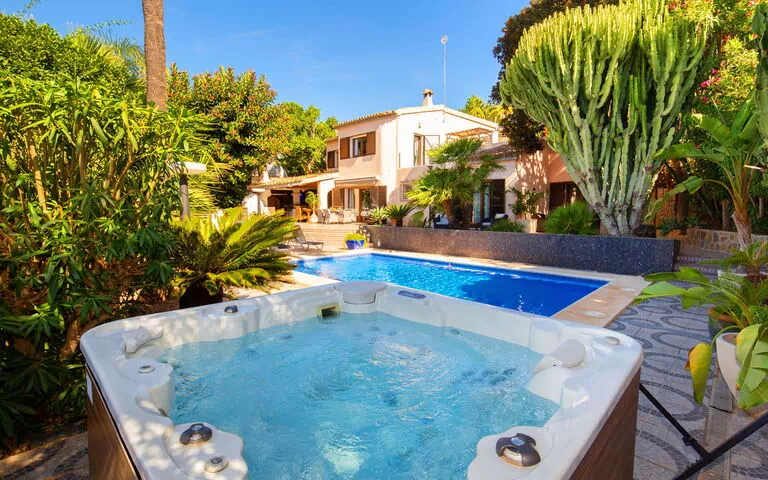 Schöne, komfortable Villa "El Salvador", auf 2 Stockwerken. 7 km vom Zentrum von Moraira, 7 km vom Zentrum von Calpe, alleinstehende, ruhige Lage im Villenviertel, verkehrsberuhigte Zone, 250 m vom Meer, 250 m vom Strand. Zur Alleinbenutzung: Grundstück (eingezäunt), schöner, gepflegter Garten, Schwimmbad (8 x 4 m, saisonale Verfügbarkeit: 01.Jan. - 31.Dez.). Aussendusche, Sprudelbad, Poolhaus mit Kühlschrank und Kochherd, Terrasse, Grill. Lebensmittelgeschäft, Supermarkt 750 m, Restaurant, Bar, Café 650 m, Bushaltestelle 600 m, Sandstrand "Playa la Fustera" 650 m. Sporthafen 2 km, Golfplatz (9 Loch) 6 km. Nahe gelegene Sehenswürdigkeiten: Aqualandia, Mundomar, Terra Mítica, Terra Natura, Benidorm Palace (Benidorm), Les Fonts de l'Algar, Castillo de Guadalest. Der Besitzer akzeptiert keine Jugendgruppen.