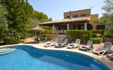 Mancor de la Vall: Gemütliches, rustikales, komfortables Haus "Roura", Baujahr 200, renoviert im Jahre 2013, umgeben von Bäumen. Am Ortsrand Mancor de la Vall, ruhige, sonnige Lage, 25 km vom Meer, im Grünen. Zur Alleinbenutzung: Grundstück 6'000 m2, Naturgarten 200 m2, Schwimmbad nierenförmig (saisonale Verfügbarkeit: 01.Jan. - 31.Dez.). Aussendusche. Im Hause: Internetzugang, Wireless LAN, Sonnenterrasse, Waschmaschine. Parkplatz auf dem Grundstück. Supermarkt 1 km, Restaurant 1 km, Bushaltestelle 3 km, Sandstrand 25 km. Golfplatz (18 Loch) 20 km, Tennis 1 km, Reitstall 4 km. Bitte beachten: Fahrzeug empfohlen. Geeignet für Familien, geeignet für Senioren Babyausstattung auf Anfrage (inkl.). Objekt geeignet für 12 Erwachsene. Der Besitzer akzeptiert keine Jugendgruppen. Be- und Entladen am Ferienhaus möglich. Flugplatz 45 km vom Haus.