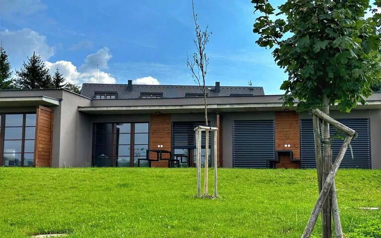 Der Bungalow mit großem Vorgarten befindet sich in einem neu erbauten Ort unweit des Skizentrums Ski Center Říčky in Orlické Hory komfortabler Bungalow, Baujahr 2023. Ruhige, sonnige Lage, 2 km vom Skigebiet. Zur Alleinbenutzung: Terrasse, Gartenmöbel. Im Hause: Zentralheizung. Parkplatz (überdacht) auf dem Grundstück. Lebensmittelgeschäft 2.8 km, Bushaltestelle "Říčky v Orlických horách, Perla" 130 m, Bahnstation "Rokytnice v Orlických horách" 6 km. Luftseilbahn 2 km, Skilift 2 km, Skipisten 2 km, Skiverleih 2 km. Nahe gelegene Sehenswürdigkeiten: Komáří vrch 5 km, Pevnost Hanička 7 km, Pod Zakletým, U Kunštátské kaple 7 km, Rašeliniště pod Pětirozcestím 7 km, Rašeliniště pod Předním vrchem 12 km, Údolí Záhorského potoka,Sfinga 12 km, Trčkovská louka, Šerlich 17 km. Bekannte Skigebiete sind gut erreichbar: Ski centrum Říčky 2 km, Farský kopec/Rokytnice v Orlic.hor. 6 km, Deštné v Orlických horách 18 km. Die Unterkunft ist Ausgangspunkt für Langlaufloipen, Radwege und Wanderwege zu den Gipfeln des Adlergebirges.