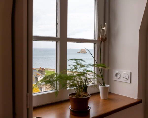 Die Ferienwohnung "Le Grand Bé" umfasst 90 Quadratmeter, verteilt auf drei Geschosse, und bietet Platz für maximal 4 Gäste in 2 Schlafzimmern und 2 Bädern. Das dritte Obergeschoss beherbergt die gesamte Einheit mit hellem, großzügigem Wohnbereich, modernem Mobiliar und Parkettböden durchgehend. Das große Wohnzimmer ist mit einem Flachbildfernseher ausgestattet und geht offen in die Küche über. Das erste Schlafzimmer verfügt über ein französisches Bett mit den Maßen 140 cm × 190 cm und ein eigenes Bad mit Dusche. Das zweite Schlafzimmer mit Fenster zum Innenhof ist ebenfalls mit einem französischen Bett von 140 cm × 190 cm ausgestattet. Beide Bäder sind mit Dusche und WC ausgeführt. Die Ferienwohnung bietet einen Meerblick.