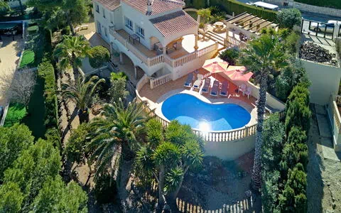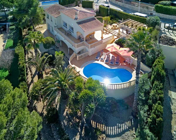 Das Ferienhaus "Piedra" liegt im ruhigen und sonnigen Ortsteil Monte Jávea in Teulada, Spanien. Das zweistöckige Haus bietet großzügige Wohnräume und eine warme, einladende Atmosphäre. Das Anwesen verfügt über einen gepflegten privaten Garten mit natürlicher Begrünung, alten Bäumen und einem Wildgartenareal. Das charakteristische nierenförmige Schwimmbecken misst 8 x 4 Meter mit einer Tiefe von 120 bis 210 cm.