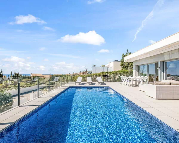 Cumbre del Sol: Moderne, schöne Villa "Blanca". 5 km vom Zentrum von Moraira, 14 km vom Zentrum von Benissa, 24 km vom Zentrum von Calpe, ruhige, sonnige Lage im Villenviertel, verkehrsberuhigte Zone, 2 km vom Meer, 2 km vom Strand. Zur Alleinbenutzung: Grundstück 850 m2 (eingezäunt), schöner Garten, Schwimmbad (8 x 3 m, 120 - 210 cm tief, saisonale Verfügbarkeit: 01.Jan. - 31.Dez.). Terrasse, Gartenmöbel, Grill. Bushaltestelle "Benitachell" 5.1 km, Bahnstation "Teulada" 8.7 km, Fähre "Denia" 24 km, Kieselstrand "Cala Moraig" 5.4 km. Der Besitzer akzeptiert keine Jugendgruppen.