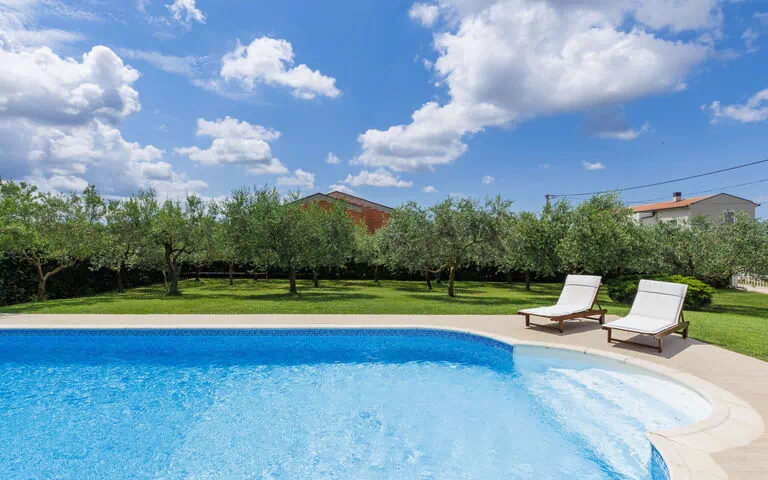 Nova Vas 6 km von Poreč: Schönes, gemütliches Einfamilienhaus "Villa Sole", auf 2 Stockwerken. 500 m vom Zentrum von Nova Vas, ruhige, sonnige Lage, 5 km vom Meer, 5 km vom Strand. Zur Alleinbenutzung: Grundstück 1'560 m2 (eingezäunt) mit Pflanzen und Bäumen, Schwimmbad (56 m2, 80 - 220 cm tief, saisonale Verfügbarkeit: 01.Mai. - 01.Okt.) mit Innentreppe. Ungleichmässige Schwimmbadform, Aussendusche, Terrasse (10 m2), Gartenmöbel, Grill, Kinderspielplatz (Schaukel). Im Hause: Internetzugang, Tischtennis, Waschmaschine. Zur Verfügung: Fahrräder (3). Parkplatz (für 2 Autos) beim Haus auf dem Grundstück. Einkaufsgeschäft 500 m, Restaurant 1 km, Bushaltestelle 600 m, Kieselstrand 5 km. Tennis 5 km, Reitstall 7 km, Wanderwege ab Haus 100 m, Radweg 200 m. Nahe gelegene Sehenswürdigkeiten: Aquapark 10 km, Amusement park 15 km. Bitte beachten: geeignet für Familien. Der Besitzer akzeptiert keine Jugendgruppen. Flugplatz 55 km vom Haus.