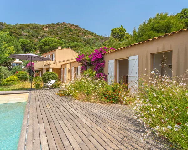 Cavalière 8 km von Le Lavandou: Grosse Villa "Villa du Temple", auf 2 Stockwerken. Mietobjekt bestehend aus Haupt- und Nebengebäude, ruhige Lage am Hang, 1 km vom Meer, 1 km vom Strand, Richtung Südwesten. Zur Alleinbenutzung: Naturgarten, Schwimmbad eckig (80 - 180 cm tief, saisonale Verfügbarkeit: 15.Mai. - 15.Okt.) mit Alarmanlage. Poolpflege durch den Besitzer/Gärtner. Treppenweg (40 Stufen) bis zum Haus. Parkplatz (für 2 Autos). Lebensmittelgeschäft 1 km, Restaurant 800 m, Bushaltestelle "Mairie de Cavalière" 1.3 km, Sandstrand "Cavalière" 1 km. Nahe gelegene Sehenswürdigkeiten: Saint Tropez 35 km, Magic World 32 km, Parc Olbius Riquier 30 km, Le Jardin des Méditerranées 8 km. Wandergebiete: Sentiers du Littoral. Bitte beachten: Fahrzeug empfohlen. Die Schlüsselübergabe findet bei der Agentur Interhome in Le Lavandou statt, 8 km.