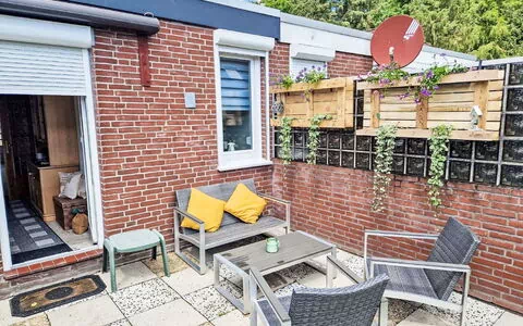 Berumbur 2 km von Hage: Gemütliches Reihenhaus. Im Ortszentrum von Berumbur, 500 m vom Waldrand, 9 km vom Meer, 12 km vom Strand. Im Hause: Zentralheizung. Parkplatz beim Haus. Supermarkt 3 km, Restaurant 700 m, Bäckerei 3 km, Café 3 km, Fahrradverleih 3 km, Bushaltestelle "Berumbur Hauptstraße/Eichenstraß" 850 m, Sandstrand "Norddeich" 12 km, Freibad, Hallenbad, Badesee 700 m. Golfplatz (18 Loch) 4 km, Surfschule 12 km, Tennis, Minigolf, Kinderspielplatz 700 m. Nahe gelegene Sehenswürdigkeiten: Burg Berum 1.5 km, Schlosspark Lütetsburg 4 km, Nordseeheilbad Norddeich 12 km, Greetsiel 28 km, Aurich 25 km, Seehafenstadt Emden 36 km. Bitte beachten: Fahrzeug empfohlen.