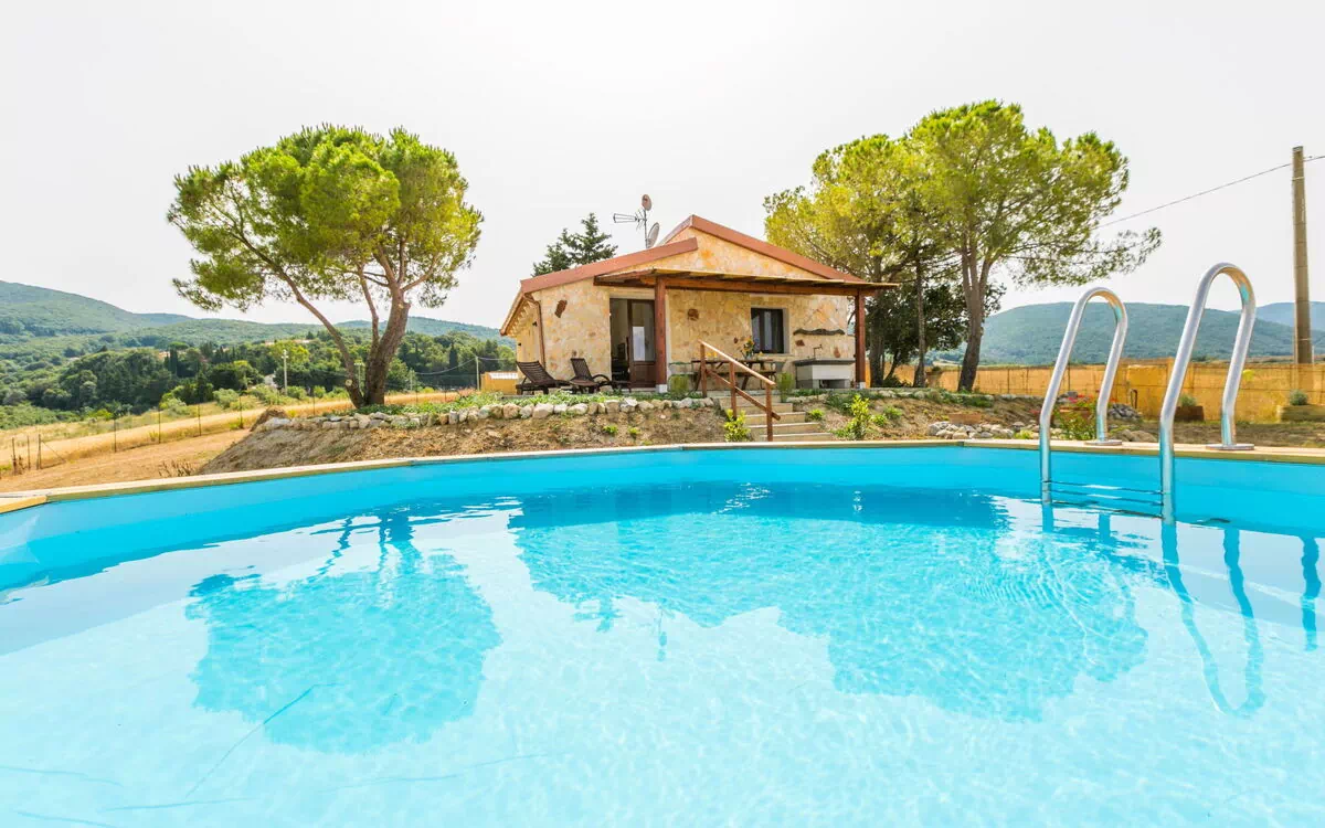 Allein stehendes Ferienhaus mit privatem Pool, W-LAN, Klimaanlage, TV, Terrasse, Panoramablick