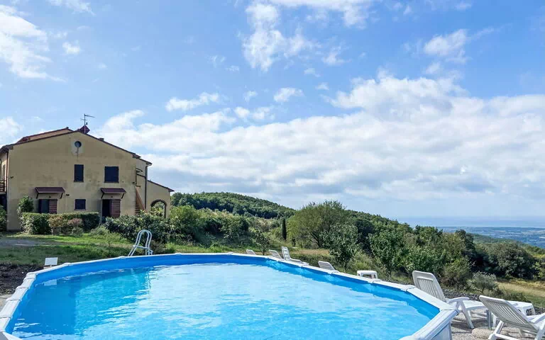 Landhaus "Bellavista", auf 3 Stockwerken, einseitig angebaut, umgeben von Wiesen und Feldern. 4 Wohnungen im Ferienhaus. Am Ortsrand, 1.2 km vom Zentrum von Castellina Marittima, alleinstehende, ruhige, erhöhte Lage, 10 m vom Waldrand, 17 km vom Meer, 17 km vom Strand. Zur Mitbenutzung: Grundstück, Aufstellpool rund (5 m Durchmesser, 125 - 125 cm tief, saisonale Verfügbarkeit: 01.Jun. - 30.Sep.). Poolpflege durch den Besitzer/Gärtner. Im Hause: Waschmaschine, Wäschetrockner (zur Mitbenutzung). Zufahrt (100 m Naturweg). Parkplatz auf dem Grundstück. Einkaufsgeschäft 1.2 km, Lebensmittelgeschäft 1.2 km, Restaurant 700 m, Bushaltestelle 100 m, Sandstrand "Vada" 17 km, Thermalbad "Casciana Terme" 30 km. Nahe gelegene Sehenswürdigkeiten: Pisa 50 km, Lucca 70 km, Firenze 120 km.