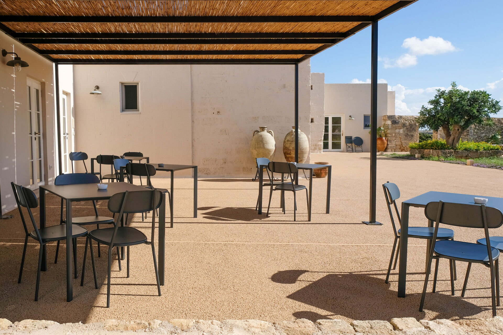 Patio (60 m2): garden furniture, al fresco dining, 10 dining tables (people: 2).