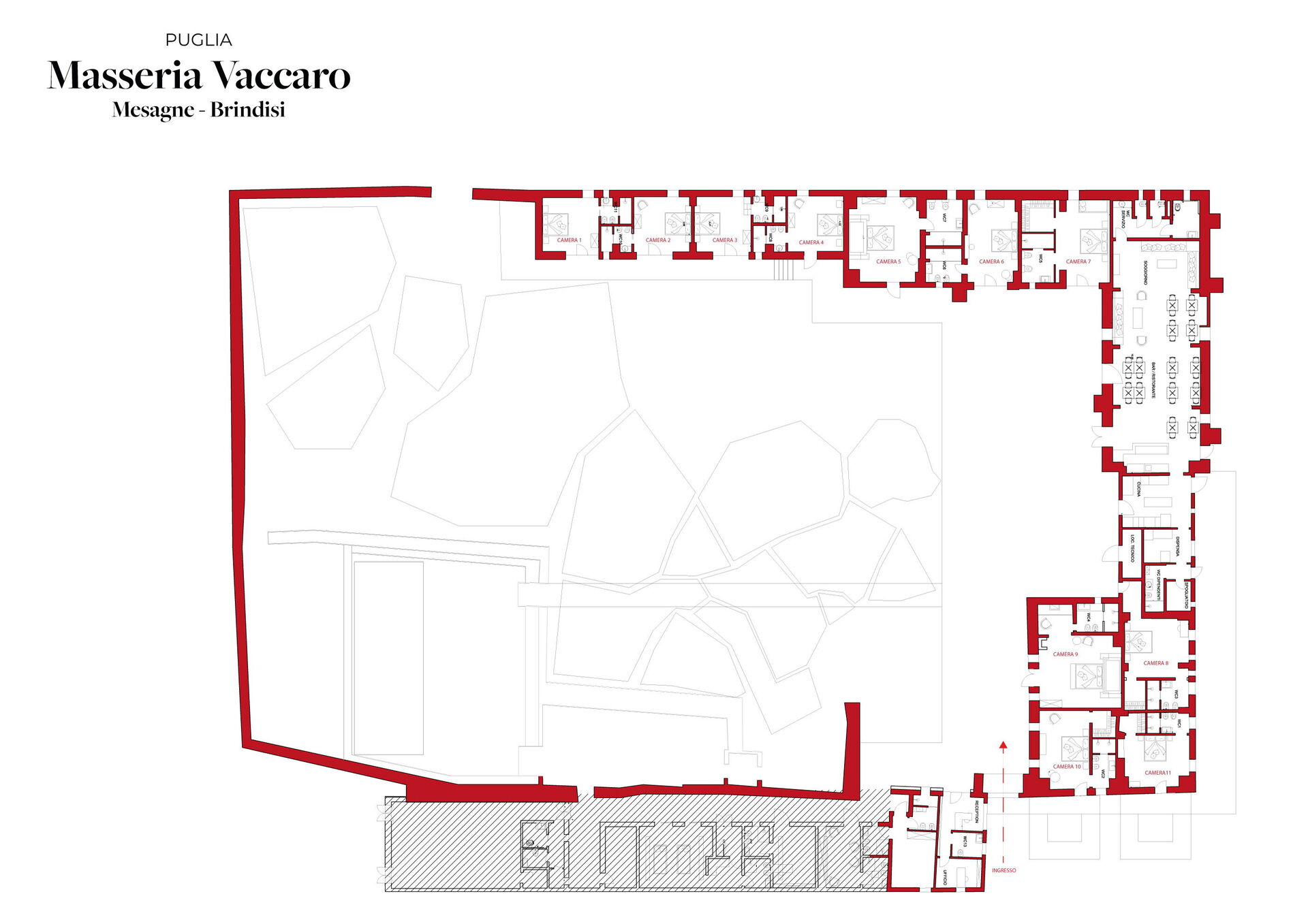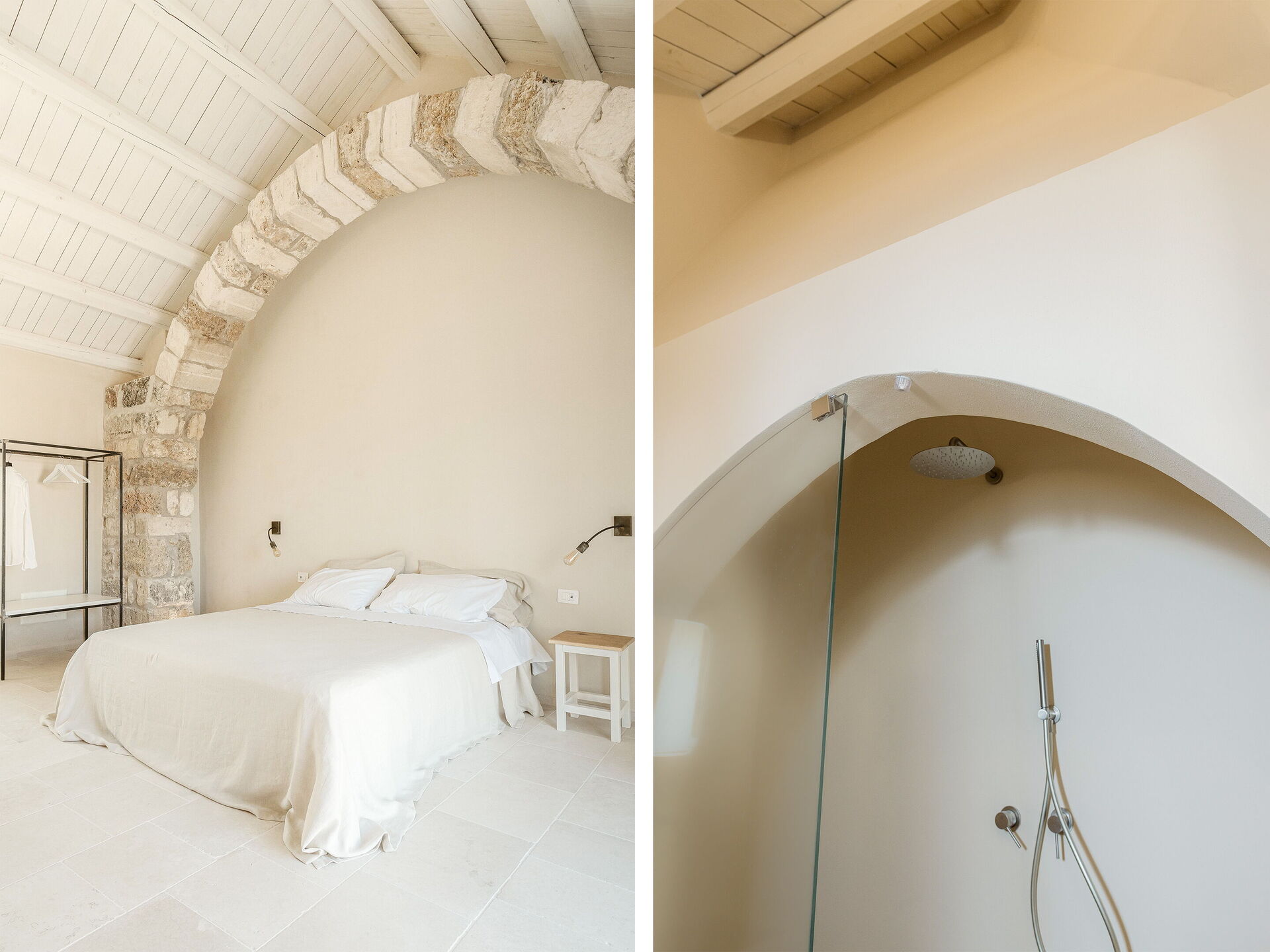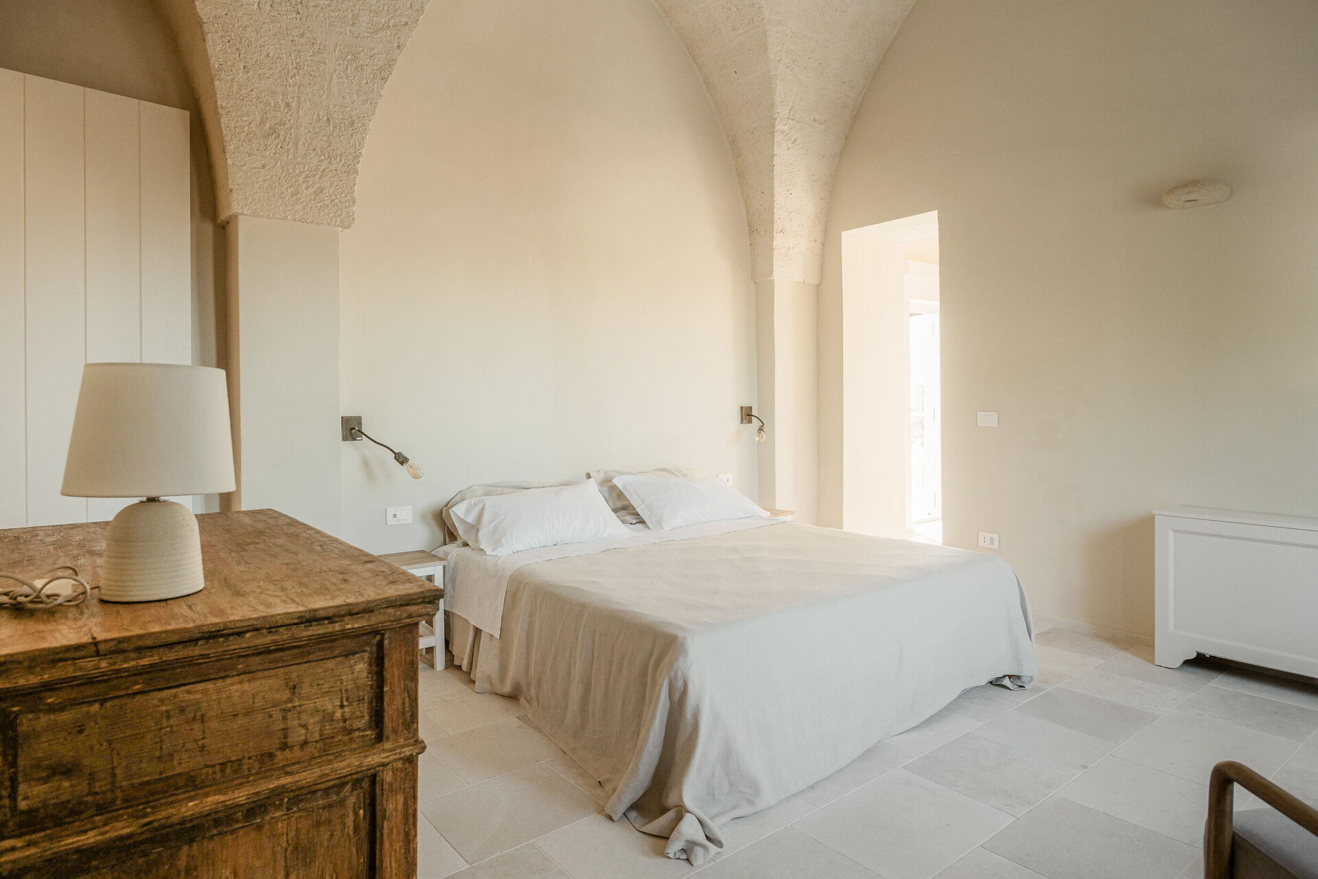 Located on the ground floor of Masseria Vaccaro, with the entrance from the courtyard, it is a spacious and bright room for two people, the ideal location for unforgettable stays and holidays in Puglia.