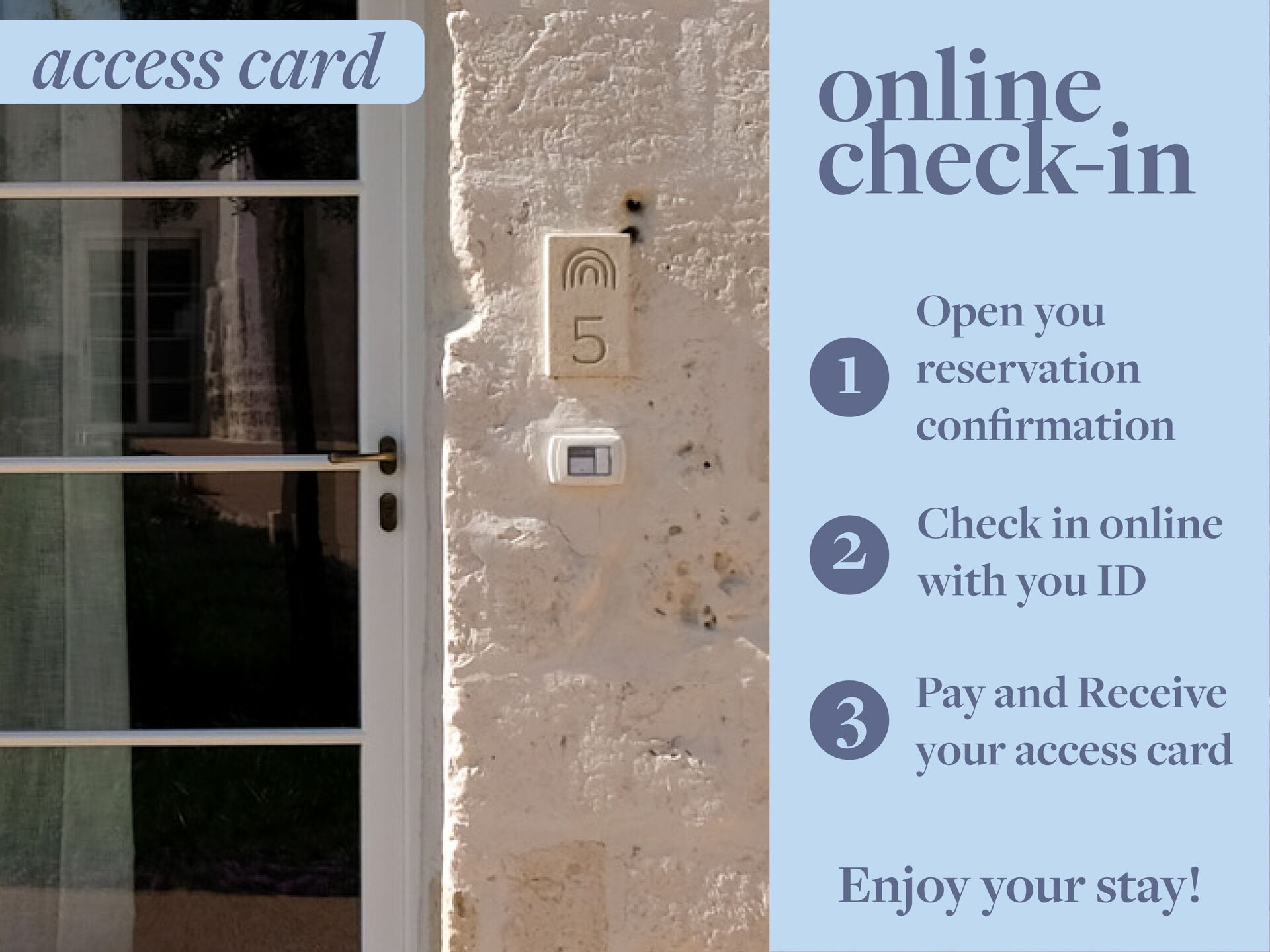 Reception: open from 4pm to 7pm, air conditioning, WIFI internet.