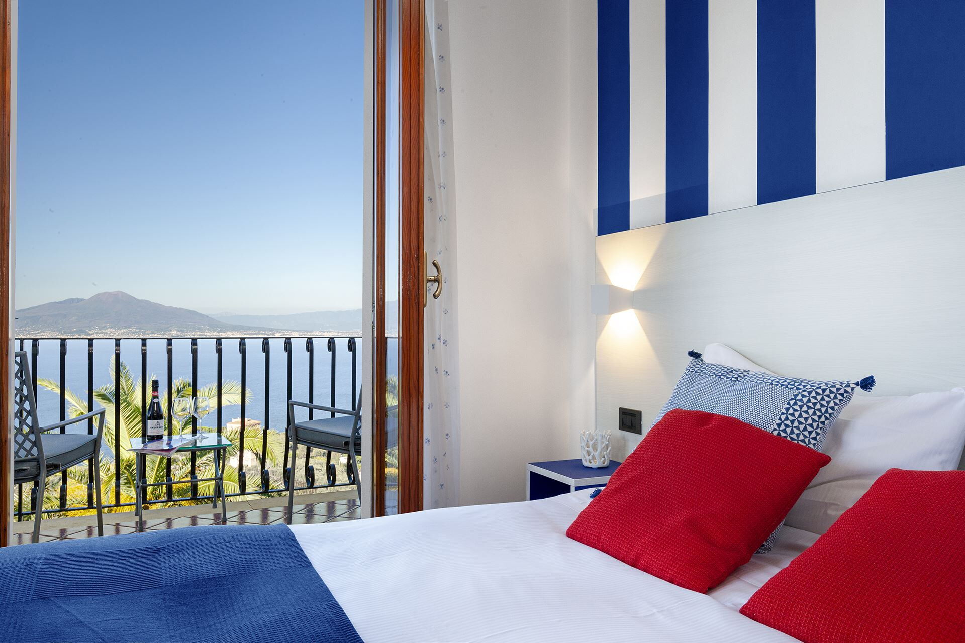 Villa Flora bietet komfortabel Platz für bis zu 10 Gäste in 5 Schlafzimmern und 4 Badezimmern, verteilt auf die Hauptvilla und ein separates Nebengebäude. Die Hauptvilla verfügt über ein geräumiges offenes Wohnzimmer, das in einen Wohnbereich und eine Küchenzone unterteilt ist, mit einem Esstisch für 10 Personen. Eine angrenzende Veranda dient als zusätzlicher Wohnraum, möbliert mit einem Doppelschlafsofa, einem Sofa, zwei Sesseln und einem Fernseher. Drei Doppelschlafzimmer befinden sich entlang des Flurs der Hauptvilla, jedes mit einem Doppelbett, einem Kleiderschrank und einem Schreibtisch ausgestattet. Diese drei Schlafzimmer teilen sich den Zugang zu einem 12 Quadratmeter großen Balkon, der mit einem Tisch, 3 Stühlen und 2 Bänken möbliert ist und durch französische Fenstertüren einen Blick auf das Meer, Sorrent und den Vesuv bietet. Zwei Badezimmer dienen der Hauptvilla, das erste enthält ein Waschbecken, ein Bidet, eine Toilette, eine Duschkabine und einen Haartrockner, während das zweite über ein Waschbecken, ein Bidet, eine Toilette, eine Badewanne mit Dusche und einen Haartrockner verfügt, beide vom Flur aus zugänglich. Das Nebengebäude umfasst zwei weitere Doppelschlafzimmer, die jeweils als Suite mit eigenem Bad konfiguriert sind. Das vierte und fünfte Schlafzimmer verfügen jeweils über ein Doppelbett, einen Fernseher, einen Kühlschrank und einen kleinen Barbereich, der mit einem Wasserkocher und Tassen für Tee oder Kaffee ausgestattet ist. Beide ensuite Badezimmer enthalten ein Waschbecken, ein Bidet, eine Toilette, eine Dusche und einen Haartrockner. Diese Schlafzimmer im Nebengebäude sind von der dritten Terrasse aus durch französische Fenstertüren zugänglich. Ein separater Waschraum beherbergt Haushaltsgeräte.