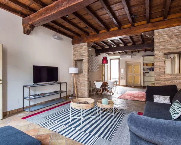 "Pantheon View", 3-Zimmer-Wohnung 120 m2 im 4. Stock. Grosses Wohn-/Esszimmer mit TV. 1 Doppelzimmer mit offenem Kamin (nur Deko). 1 Zimmer mit 2 Betten. Kleine Küche (Geschirrspüler, 4 Flammen, Wasserkocher). Bad/Bidet/WC. G-Heizung, Klimaanlage. Heizung nur verfügbar von 01.11. bis 15.04. Zur Verfügung: Internet (WLAN, gratis). Bitte beachten: Nichtraucher-Unterkunft, kein Parkplatz. Kein Fahrstuhl. IT058091C2X7V275WQ