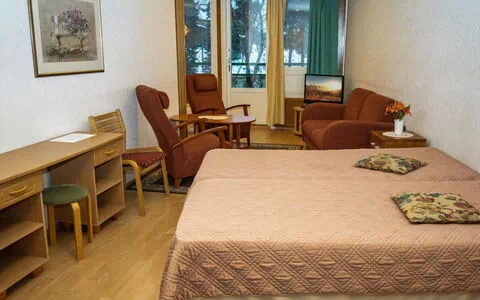Room 242 in the Spa Hotel is a cozy, bright, and spacious two-room apartment located on the 4th floor of the building. The services of Ikaalinen Spa are just 300 meters away. The apartment features a private balcony with beautiful views of Lake Kyrösjärvi, and the public beach is approx. 100 meters away. The distance to Tampere is only 55 km.