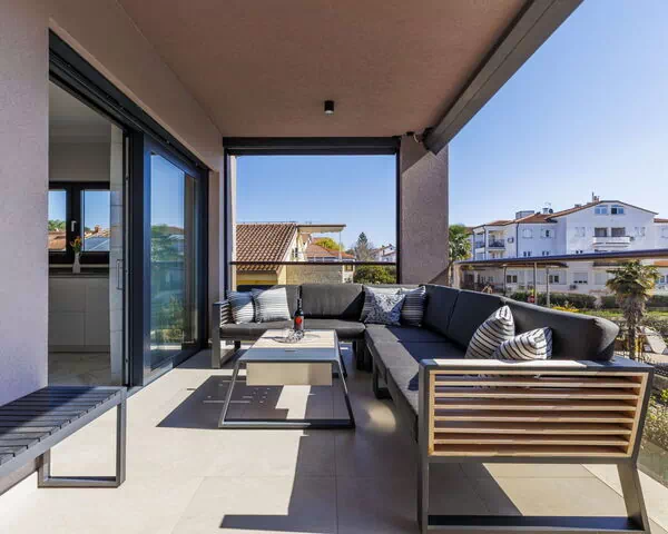 Modernes Mehrfamilienhaus. Im Ortsteil Čimižin, 900 m vom Zentrum von Poreč, 600 m vom Meer, 800 m vom Strand. Im Hause: Internetzugang, Fahrstuhl. Parkplatz beim Haus auf dem Grundstück. Supermarkt 350 m, Restaurant 500 m, Bushaltestelle 1.1 km, Kieselstrand, Felsstrand 800 m. Jacht-Hafen 1 km, Segelschule 1 km, Tennis 1 km, Wanderwege ab Haus 1 km, Radweg 1 km, Kinderspielplatz 300 m. Nahe gelegene Sehenswürdigkeiten: Aquapark 3 km. Der Besitzer akzeptiert keine Jugendgruppen.