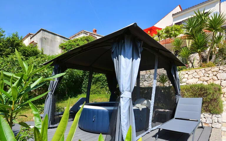 Haus "Teo", auf 2 Stockwerken. 5 km vom Zentrum von Trogir, sonnige, erhöhte Lage am Hang, 30 m vom Meer, 30 m vom Strand. Zur Alleinbenutzung: Grundstück 650 m2 (eingezäunt), terrassierter Garten. Terrasse (50 m2), Gartenmöbel. Im Hause: Internetzugang, Waschmaschine. 40 m Treppenweg (50 Stufen) bis zum Haus. Parkplatz (für 2 Autos, überdacht) in 80 m. Supermarkt 1.2 km, Restaurant 1.2 km, Café 400 m, Bushaltestelle 1.6 km, Felsstrand, betonierter Strand 30 m. Bitte beachten: Flugplatz 9 km vom Haus.
