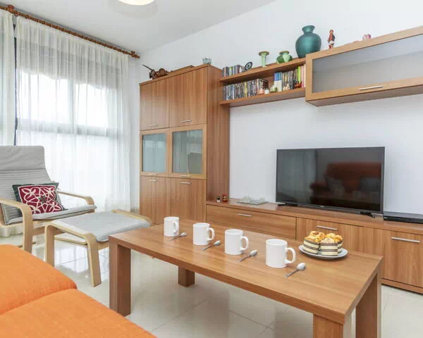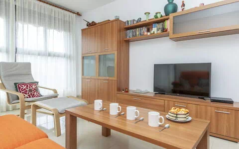 "San Blas", 3-Zimmer-Wohnung 72 m2. Zweckmässig und komfortabel eingerichtet: Wohn-/Esszimmer mit Esstisch, TV, Kabel-TV, E-Heizofen, Klimaanlage und Ventilator. 2 Zimmer, jedes Zimmer mit 1 franz. Bett (1 x 135 cm, Länge 190 cm), E-Heizofen und Ventilator. Küche (Backofen, Geschirrspüler, 3 Glaskeramikplatten, Toaster, Mikrowelle) mit Boiler (80 Liter). Bad/WC, Dusche/WC. E-Heizung. Heizung nicht in allen Räumen. Zur Verfügung: Waschmaschine, Bügeleisen, Haartrockner. Internet (WLAN, gratis). Garage Nr. 10. Bitte beachten: Wohnung auf Strassenseite. Nichtraucher-Unterkunft. TV nur ES. VT-46220-CS // Reg. Nr.: ESFCTU0000120090003266960000000000000000VUT0046220CS3