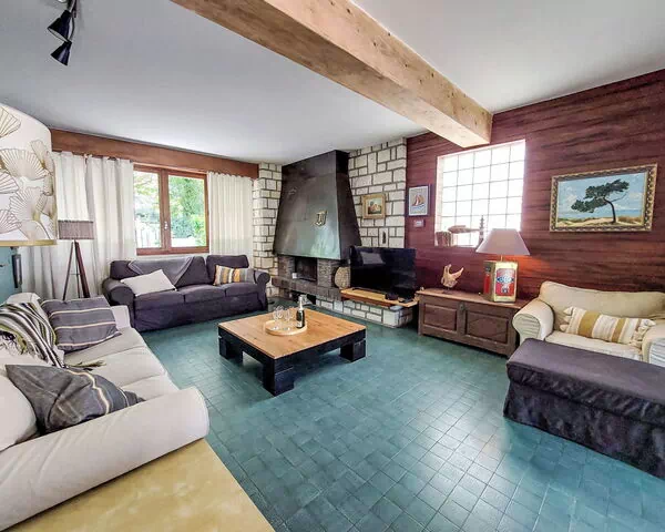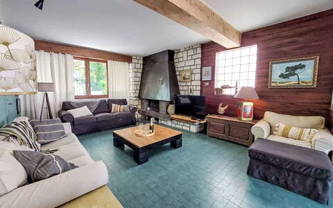 5-Zimmer-Reihenhaus 145 m2. Sehr schön eingerichtet: grosser Eingang. Ausgang zur Veranda. Grosses Wohn-/Esszimmer 45 m2 mit offenem Kamin (nur Deko), TV (Flachbildschirm). Ausgang zur Veranda. Offene Küche (Backofen, Geschirrspüler, 4 Flammen, Toaster, Wasserkocher, Mikrowelle, elektrische Kaffeemaschine) mit Esstisch. Ausgang zum Garten. Sep. WC. Obergeschoss: 1 grosses Zimmer mit 1 franz. Bett (160 cm, Länge 200 cm), Waschbecken und Dusche. Ausgang zum Balkon. 1 Zimmer mit 1 franz. Bett (160 cm, Länge 200 cm). Ausgang zur Terrasse. 1 grosses Zimmer mit 2 Betten (90 cm, Länge 190 cm), Waschbecken und Dusche. 1 Zimmer mit 1 franz. Bett (160 cm, Länge 200 cm). Bad/WC, Doppelwaschbecken. G-Heizung. Grosse Terrasse 16 m2. Terrassenmöbel, Gartengrill, Liegestühle. Zur Verfügung: Waschmaschine, Kinderhochstuhl, Babybett. Internet (WLAN). Bitte beachten: Nichtraucher-Haus. Maximal 1 Haustier/Hund erlaubt. Rauchmelder. Inserat einer Privatperson nach Artikel 155, IV, CGI. 85194001391EE