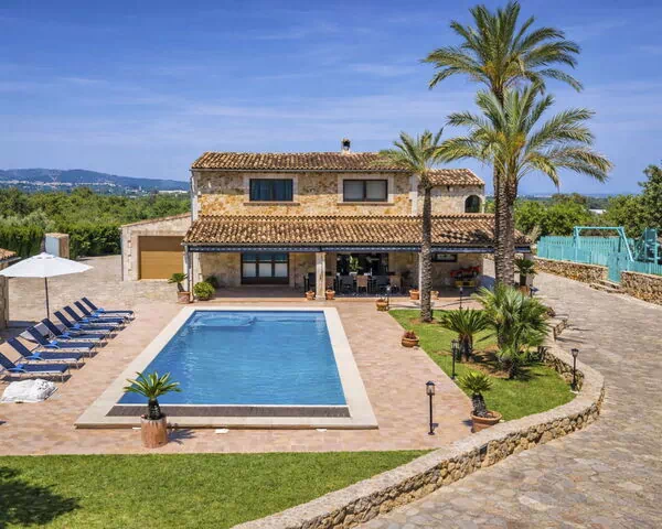 Sehr grosse, schöne Villa "Son Bosc", auf 2 Stockwerken, umgeben von Bäumen. Ausserhalb des Ortes, 4 km vom Zentrum von Inca, ruhige, sonnige Lage im Villenviertel, 2 km vom Waldrand, 20 km vom Meer, im Grünen. Zur Alleinbenutzung: Grundstück (eingezäunt), Garten mit Rasen und Pflanzen, Schwimmbad eckig (11 x 5 m, 30 - 200 cm tief, saisonale Verfügbarkeit: 01.Jan. - 31.Dez.). Aussendusche, Sitzplatz, Laube, Pergola, Gartenmöbel, Grill, Kinderspielplatz (Rutschbahn, Schaukel), Poolpflege durch den Besitzer/Gärtner. Im Hause: Internetzugang, Wireless LAN, Einstellraum für Fahrräder, Zentralheizung, Klimaanlage, Waschmaschine, Wäschetrockner, Heizung nur verfügbar von 01.Nov. - 31.Mar.. Parkplatz beim Haus auf dem Grundstück, Einzelgarage. Einkaufsgeschäft 5 km, Lebensmittelgeschäft 5 km, Supermarkt 5 km, Restaurant 3.5 km, Bar 5 km, Bäckerei 5 km, Café 5 km, Internet-Café 5 km, Fußgängerzone 5 km, Fahrradverleih 5 km, Biergarten 5 km, Zentrum zu Fuss in 60 Minuten erreichbar, Bushaltestelle 5 km, Bahnstation 5 km, Sandstrand "Port Alcúdia" 23 km, Felsstrand 23 km. Sporthafen 25 km, Jacht-Hafen 25 km, Golfplatz (18 Loch) 25 km, Segelschule 30 km, Tennis 5 km, Reitstall 8 km, Sportzentrum 5 km, Wanderwege ab Haus 1.5 km, Radweg 500 m. Nahe gelegene Sehenswürdigkeiten: Ciudad de Inca 3.5 km, Palma de Mallorca 35 km, Mallorca Fashion Outlet & Cinemas 25 km, Pueblos:Búger-Campanet-Selva-Caimari. Playa y Faro de Formentor 35 km, Santuario de Lluc 22 km. Wandergebiete: Puig de Santa Magdalena - Inca 3.6 km, Serra de Tramuntana. Bitte beachten: Fahrzeug empfohlen. Geeignet für Familien. Objekt geeignet für 9 Erwachsene. Der Besitzer akzeptiert keine Jugendgruppen. Tiere in der Umgebung. Autobahn 400 m vom Haus. Flugplatz 39.6 km vom Haus.
