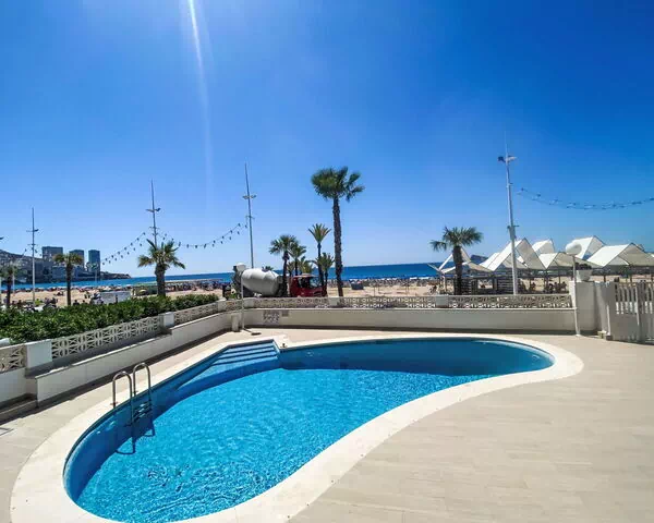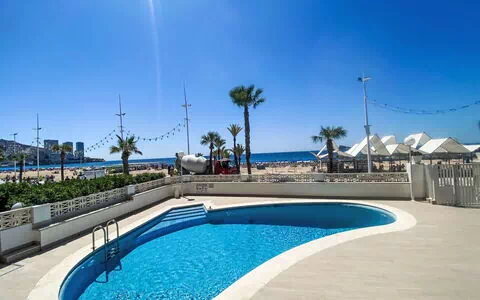 Playa Levante: Einfaches Appartementhaus "Estacha del mar", auf 14 Stockwerken. Im Ort, 500 m vom Zentrum von Benidorm (Plaza Triangular), zentrale, belebte, sonnige Lage, im Herzen der Stadt, 50 m vom Meer, 50 m vom Strand, Strasse zu überqueren. Zur Mitbenutzung: Schwimmbad (3 x 5 m, 15 m2, 50 - 150 cm tief, saisonale Verfügbarkeit: 01.Jun. - 30.Sep.). Aussendusche. Im Hause: Fahrstuhl. Parkplatz Nr. 8P. Supermarkt 400 m, Restaurant, Bar, Bushaltestelle 200 m, Bahnstation "Benidorm-Alicante" 2 km. Golfplatz (18 Loch) 5 km, Wanderwege ab Haus 2 km. Nahe gelegene Sehenswürdigkeiten: Aqualandia 3 km, Mundomar 3 km, Terra Mitica 8 km, Terra Natura 6 km, Alicante 44 km, Aeropuerto 65 km. Bitte beachten: Babyausstattung auf Anfrage. Objekt geeignet für 6 Erwachsene. Der Besitzer akzeptiert keine Jugendgruppen. Die Nachbarschaft ist sehr lärmempfindlich. Ruhe und gutes Benehmen wird erwartet.