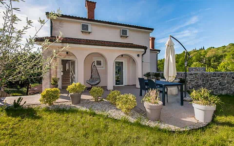 Mihelići 6 km von Opatija: Zweifamilienhaus "Mihaela". Im Weiler Mihelići, 3.5 km vom Zentrum von Matulji, 5.5 km vom Zentrum von Opatija, ruhige, sonnige, erhöhte Lage im Villenviertel, 5.5 km vom Meer. Zur Alleinbenutzung: Grundstück 900 m2 (eingezäunt) mit Rasen und Blumen, Schwimmbad eckig (8 x 4 m, 160 cm tief, saisonale Verfügbarkeit: 01.Jun. - 15.Okt.) mit Innentreppe. Aussendusche, Poolhaus, Terrasse (50 m2), Gartenmöbel, Grill, Feuerstelle. Im Hause: Internetzugang, Zentralheizung, Klimaanlage, Wäscherei, Waschmaschine. Parkplatz (für 4 Autos) beim Haus auf dem Grundstück. Einkaufsgeschäft 800 m, Supermarkt 3 km, Restaurant 800 m, Bar 750 m, Bushaltestelle 700 m, Kieselstrand 5.5 km, betonierter Strand 5.5 km. Jugendgruppen nur auf Anfrage.