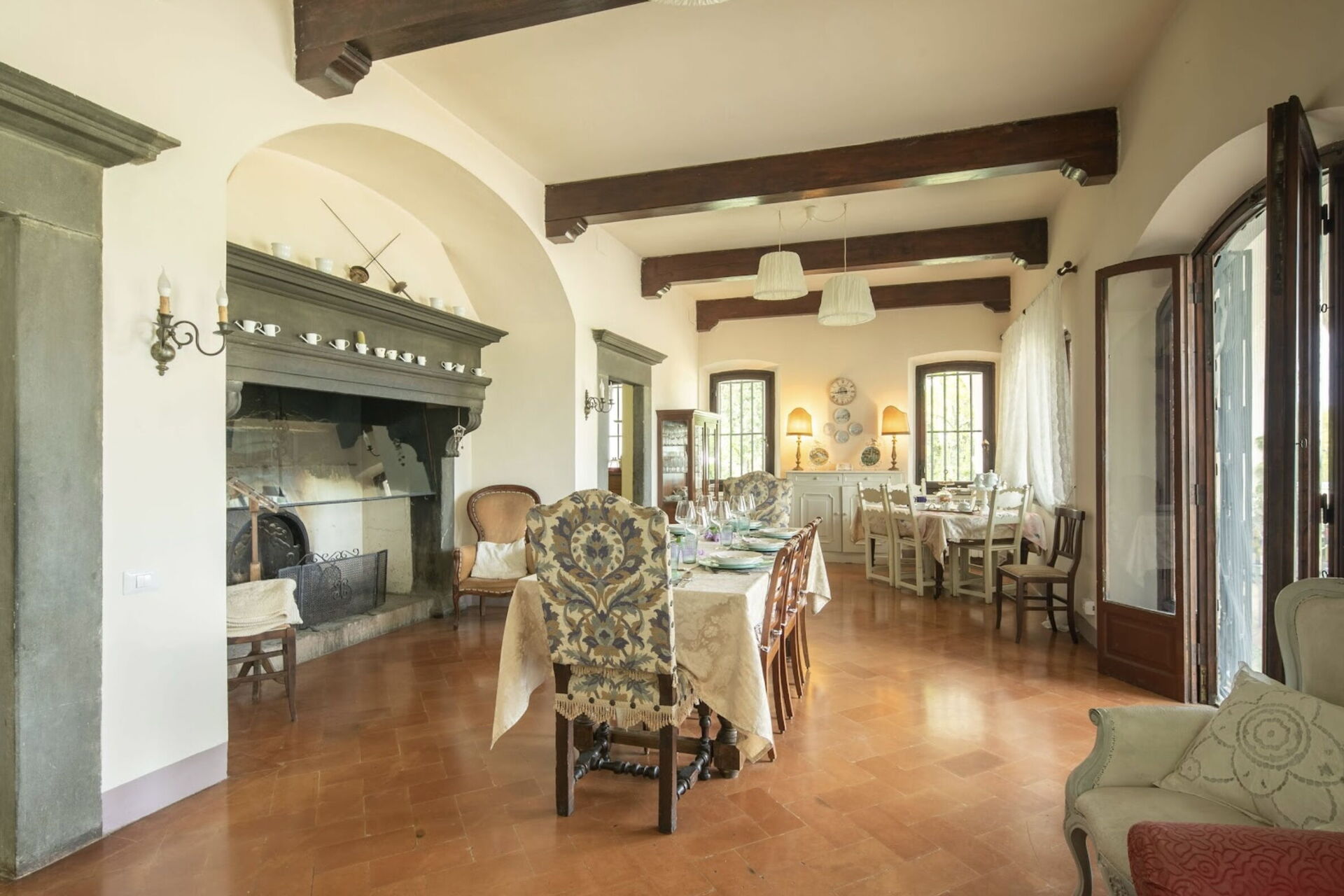 Esszimmer: Esstisch, WiFi Internet, TV, Kamin, Ausgang auf den Garten.