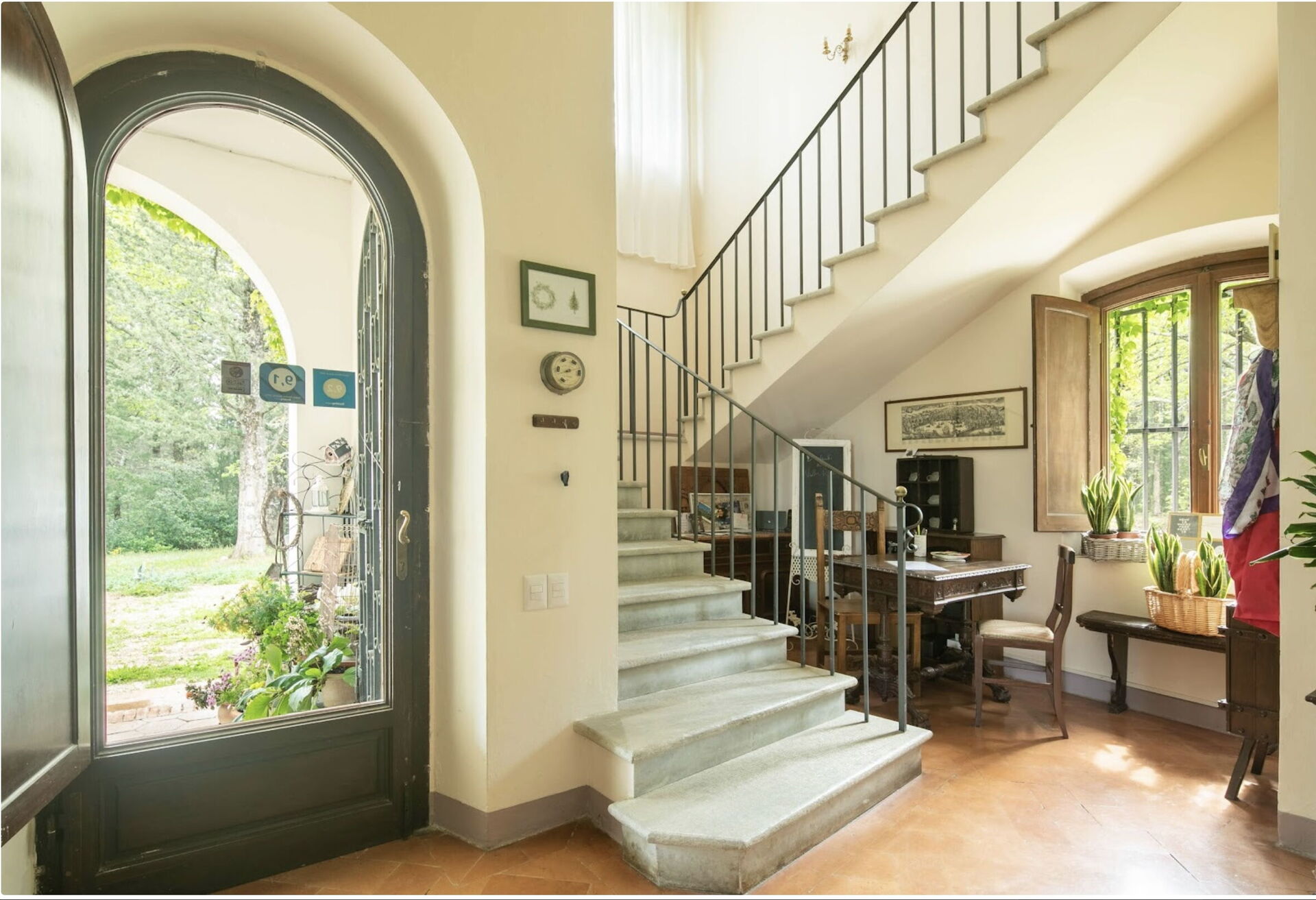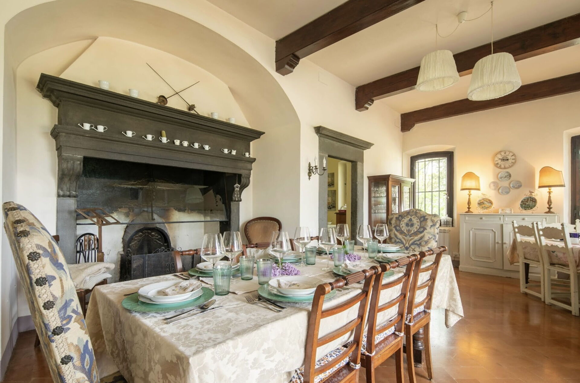 Küche: gut ausgestattete Küche, Esstisch, Spülmaschine, Kühlschrank, Tiefkühler, Mikrowelle, Herd, Ofen, Toaster, Italienische Kaffeemaschine, Amerikanische Kaffeemaschine, Trockner, Waschmaschine, Kamin, WiFi Internet, Fliegengitter, Rauchmelder, CO2 Detektor, Ausgang auf den Garten.