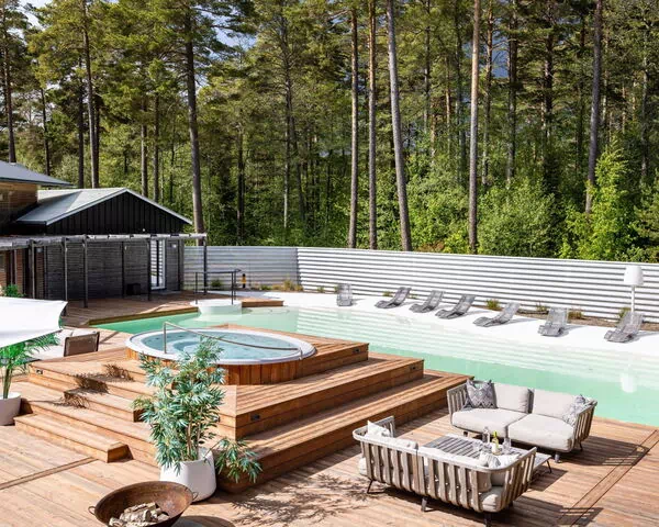 Sehr modernes, schönes Haus "Lagunen Premium Chalet". 14 Häuser in der Residenz. Alleinstehende Lage, 100 m vom Meer, im Grünen. Zur Mitbenutzung: naturbelassenes Grundstück, Schwimmbad (saisonale Verfügbarkeit: 27.Jun. und 17.Aug.). Zur Alleinbenutzung: Sprudelbad. In der Anlage: Empfang, Restaurant, Wellnessbereich zur Mitbenutzung, Sonnenterrasse. Parkplatz beim Haus. Supermarkt 25 km, Restaurant 100 m, Bushaltestelle "Arnöviken" 600 m, Bahnstation "Hudiksvall" 25 km, Grasstrand 200 m. Golfplatz (18 Loch) 30 km, Angelmöglichkeit 200 m. Bitte beachten: Angeln (mit Bewilligung). Öffnungszeiten Außen-Spa und Restaurant: Wochenenden: 6. Juni - 26. Juni, Ganztägig: 27. Juni - 17. August, Geöffnete Wochenenden: 18. August - 31. August, Geöffnete Wochenenden: 18. August - 31. August.