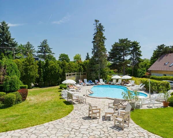 Balatonfüred: Bitte beachten Sie: Das Spa ist täglich von 14-19 Uhr geöffnet. Residenz. Exzellente Lage: Absolut zentral und dennoch ruhig, 690 m vom See, 850 m vom Strand. Zur Mitbenutzung: Grundstück (eingezäunt), Schwimmbad nierenförmig (110 - 180 cm tief, saisonale Verfügbarkeit: 15.Mai. - 15.Sep.). Aussendusche, Tischtennis. In der Anlage: Empfang, Sauna, Dampfbad, Sprudelbad (alles inkl.), Infrarotwärmekabine, Ruheraum, Tischtennis, Einstellraum für Fahrräder, Zentralheizung, Klimaanlage, Fahrradverleih. Supermarkt 280 m, Restaurant 800 m, Bäckerei 200 m, Fahrradverleih 1.3 km, Bahnstation "Balatonarács" 200 m, Thermalbad "Hévíz" 68 km. Golfplatz (18 Loch) 12 km, Tennis 400 m, Tennishalle 3 km, Reitstall 12 km, Radweg 650 m, Kinderspielplatz 800 m. Nahe gelegene Sehenswürdigkeiten: Forrás Sport Center 3 km, Balatonfüred Annagora Aquapark 2 km, Jókai viewpoint 2 km, Balatonibob Leisure Park 22 km, Figula Vine Yard 3 km, Golf Club Balatonudvari 12 km.