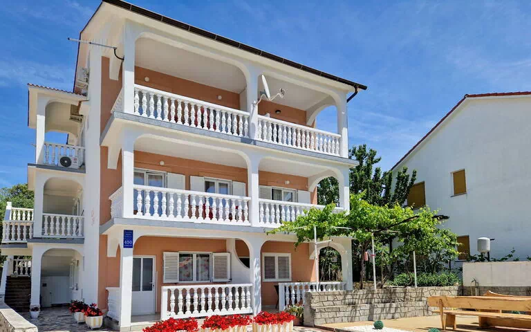 Mehrfamilienhaus "Zora". 600 m vom Zentrum von Lopar, 13 km vom Zentrum von Rab, 700 m vom Meer, 700 m vom Strand, an einer Strasse. Zur Mitbenutzung: Grundstück 700 m2, Blumen und Bäumen. Terrasse (30 m2), Gartenmöbel, Grill. Im Hause: Internetzugang. Parkplatz beim Haus auf dem Grundstück. Einkaufsgeschäft 350 m, Supermarkt 600 m, Restaurant 750 m, Bäckerei 210 m, Café 500 m, Bushaltestelle 800 m, Fähre 1.9 km, Sandstrand 700 m.