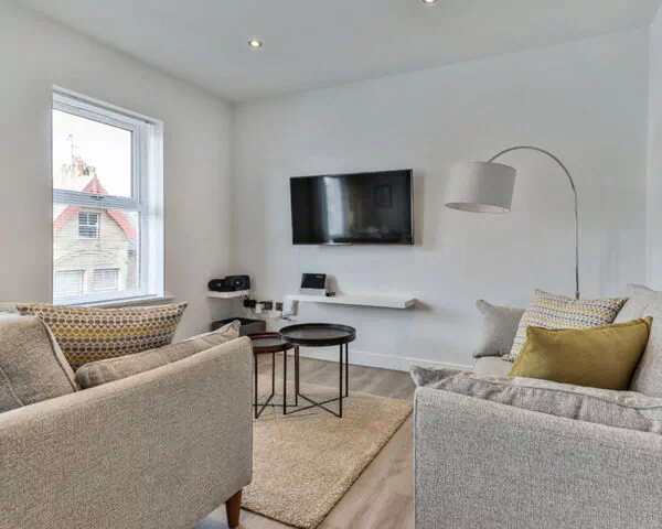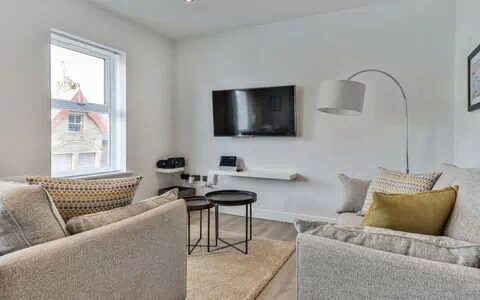 Filey: Appartementhaus. Supermarkt 1 km, Restaurant 100 m, Bahnstation 1.5 km, Sandstrand 500 m. Golfplatz 1.5 km.