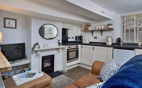 "Duck Down Cottage", 2-Zimmer-Haus 60 m2. Objekt geeignet für 2 Erwachsene. Wohnzimmer mit offenem Kamin. 1 Zimmer mit 1 Doppelbett. Küche (Backofen, Toaster, Wasserkocher, Mikrowelle, elektrische Kaffeemaschine). Dusche/WC. Zur Verfügung: Bügeleisen. Internet (WLAN, gratis). Bitte beachten: Nichtraucher-Unterkunft. 1 Haustier/Hund erlaubt. Rauchmelder.