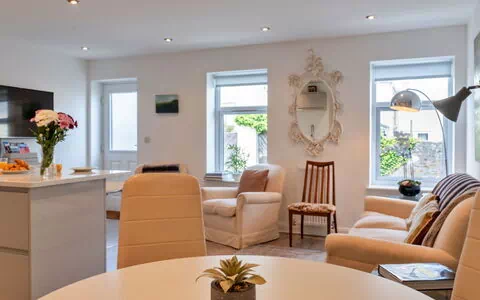 "Brunels Reach", 4-Zimmer-Haus 140 m2. Objekt geeignet für 6 Erwachsene. Wohnzimmer. 1 Zimmer mit 1 franz. Bett. 1 Zimmer mit 1 Doppelbett. 1 Zimmer mit 2 Betten. Küche (Backofen, Geschirrspüler, Toaster, Wasserkocher, Mikrowelle, Tiefkühler). Bad/WC, Dusche/WC, sep. WC. Terrasse. Zur Verfügung: Waschmaschine. Internet (WLAN, gratis). Parkplatz (1 Auto). Bitte beachten: Nichtraucher-Unterkunft. Rauchmelder.