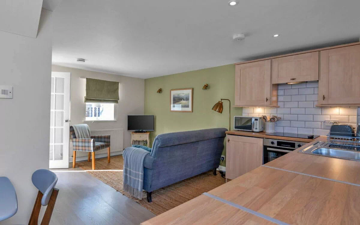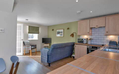 "Woodman's Cottage", 2-Zimmer-Haus 120 m2. Objekt geeignet für 2 Erwachsene. Wohnzimmer. 1 Zimmer mit 1 franz. Bett. Küche (Backofen, Geschirrspüler, Toaster, Wasserkocher, Mikrowelle, Tiefkühler). Bad/WC. Gartengrill. Zur Verfügung: Waschmaschine. Internet (WLAN, gratis). Bitte beachten: Nichtraucher-Unterkunft. 1 Haustier/Hund erlaubt. Rauchmelder.