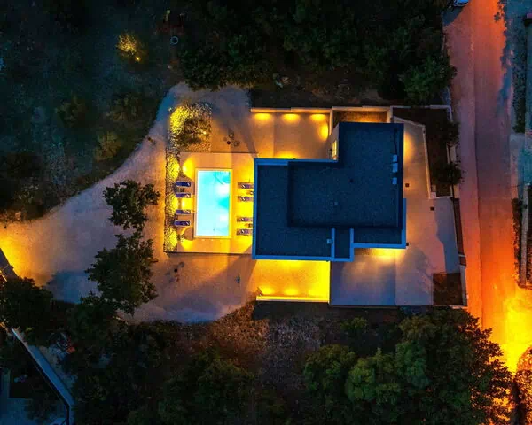 Moderne Villa "Green & Blue", auf 2 Stockwerken, Baujahr 2022. 28 km vom Zentrum von Zadar, sonnige, erhöhte Lage, 600 m vom Meer, 600 m vom Strand, an einer Strasse. Zur Alleinbenutzung: Grundstück 9'000 m2 (eingezäunt), Schwimmbad eckig (8 x 4 m, 150 cm tief, saisonale Verfügbarkeit: 15.Mai. - 15.Okt.). Aussendusche, Tischtennis, Gartenmöbel, Grill, Kinderspielplatz (Rutschbahn, Schaukel). Im Hause: Internetzugang, Billard, Waschmaschine. Parkplatz (für 3 Autos) beim Haus auf dem Grundstück. Einkaufsgeschäft 1 km, Restaurant 1.5 km, Bushaltestelle 1.5 km, Kieselstrand, Steinstrand 600 m. Nahe gelegene Sehenswürdigkeiten: NP Paklenica 17 km, Rafting Zrmanja 35 km. Der Besitzer akzeptiert keine Jugendgruppen.