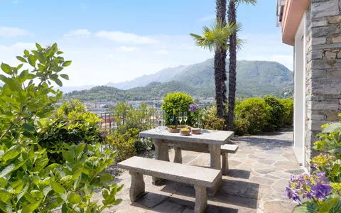 "Designer Ferienwohnung Il Soldunese", 3-Zimmer-Wohnung 70 m2, im erhöhten Erdgeschoss, Südlage. Objekt geeignet für 2 Erwachsene + 2 Kinder. Hell, vollständig renoviert im Jahre 2025, komfortabel und luxuriös eingerichtet: offenes Wohn-/Esszimmer mit 1 Doppeldiwanbett (2 x 90 cm, Länge 200 cm), Internationale TV-Sender und Flachbildschirm. Ausgang zur Terrasse, zum Gartensitzplatz. 1 Zimmer mit 1 Doppelbett (2 x 90 cm, Länge 200 cm). Ausgang zur Terrasse, Richtung Süden. Offene Küche (Backofen, Geschirrspüler, 4 Glaskeramikplatten, Toaster, Wasserkocher, elektrische Kaffeemaschine, Kapseln für die Kaffeemaschine (Nespresso) extra). Ausgang zur Terrasse. Dusche/WC, Dusche/Bidet/WC. Klimaanlage, Fussbodenheizung. Heizung nur verfügbar von 01.10. bis 30.04. Natursteinboden. Grosse Terrasse 40 m2, Südlage. Terrassenmöbel, Balkonmöbel. Herrliche Panoramasicht auf den See, die Landschaft und die Ortschaft. Zur Verfügung: Waschmaschine, Babybett bis 2 Jahre (extra), Haartrockner. Internet (WLAN, gratis, Bandbreite: 200 Mbit/s). Bitte beachten: Nichtraucher-Unterkunft. Nutzung eines E-Fiat 500 Abarth und 2 E-Bikes ist bereits im Mietpreis inbegriffen, Mietvertrag vor Ort. NL-00012453