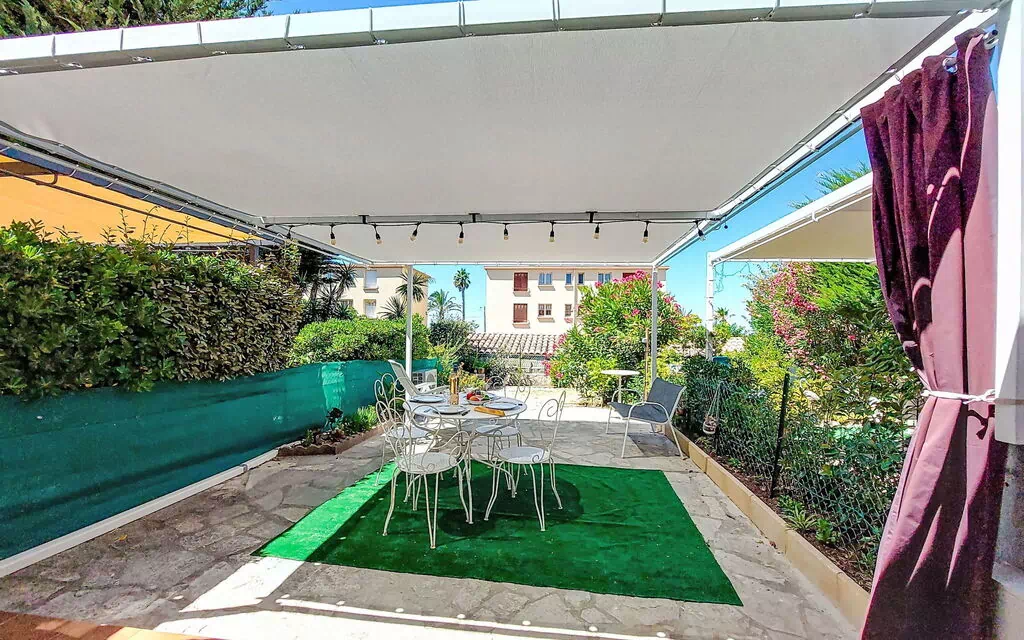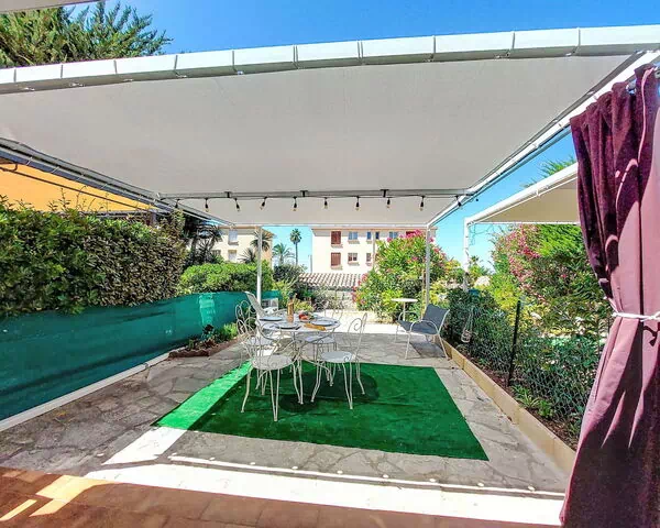 2-Zimmer-Wohnung 35 m2, im Erdgeschoss. Hell, komfortabel und schön eingerichtet: Wohn-/Esszimmer mit 1 Doppeldiwanbett (140 cm, Länge 200 cm), TV (Flachbildschirm), Klimaanlage. Ausgang zur Terrasse. 1 Zimmer mit 1 franz. Bett (140 cm, Länge 190 cm). Kochnische (Mini-Backofen, Geschirrspüler, 3 Induktionskochplatten, Toaster, Wasserkocher, Mikrowelle, elektrische Kaffeemaschine). Dusche/WC. E-Heizung. Terrasse 25 m2, Südostlage. Terrassenmöbel, Elektrogrill. Zur Verfügung: Waschmaschine. Internet (WLAN, extra). Bitte beachten: Nichtraucher-Unterkunft. 1 kleines Haustier/Hund erlaubt. TV nur FR. Rauchmelder. Inserat einer Privatperson nach Artikel 155, IV, CGI. 83112001795QC