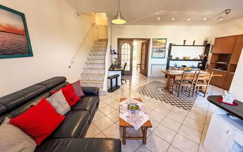 "Is Argiolas", 5-Zimmer-Reihenhaus 140 m2 auf 2 Stockwerken. Komfortabel und gemütlich eingerichtet: Wohn-/Esszimmer mit Esstisch, TV und Klimaanlage. Ausgang zum Gartensitzplatz. Küche (Backofen, Geschirrspüler, 4 Induktionskochplatten, Toaster, Wasserkocher, Mikrowelle, elektrische Kaffeemaschine). Dusche/Bidet/WC. Heizung nicht in allen Räumen. Obergeschoss: 1 Zimmer mit 1 Doppelbett, TV und Klimaanlage. 1 Zimmer mit 2 Betten. 1 Zimmer mit 1 Doppelbett und TV. Bad/Bidet/WC. Klimaanlage. Heizung nicht in allen Räumen. Grosser Balkon 6 m2, kleiner Balkon 2 m2. Gartengrill. Sicht auf die Ortschaft. Zur Verfügung: Waschmaschine, Bügeleisen, Kinderhochstuhl, Babybett (extra), Haartrockner. Parkplatz (2 Autos). Bitte beachten: Rauchmelder, Feuerlöscher. IT111105C2000S6701