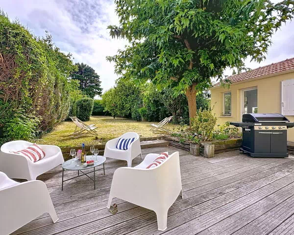 Grosses, schönes Reihenhaus "La Nero", auf 2 Stockwerken, renoviert im Jahre 2025. Im Ortszentrum von Pornic, exzellente Lage: Absolut zentral und dennoch ruhig, 800 m vom Meer, 1 km vom Strand, Richtung Süden. Zur Alleinbenutzung: grosser, gepflegter Garten 700 m2 (eingezäunt). Terrasse (40 m2), Gartenmöbel, Grill, öffentliche Parkplätze auf der Strasse. Supermarkt 100 m, Restaurant 600 m, Bäckerei 50 m, Café 30 m, Fahrradverleih 700 m, Zentrum zu Fuss in 5 Minuten erreichbar, Bushaltestelle "Gare de Pornic" 600 m, Bahnstation "Pornic" 600 m, Sandstrand "Plage de la Source" 1 km, Hallenbad 2 km, Thermalbad "Alliance Pornic Thalasso & Spa" 1 km. Sporthafen 600 m, Golfplatz (18 Loch) 3 km, Segelschule 2 km, Minigolf 3 km, Reitstall 4 km, Sportzentrum 2 km, Wanderwege ab Haus 1 km. Nahe gelegene Sehenswürdigkeiten: Faïencerie de Pornic 2 km, Pornic Aventure Accrobranche 3 km, Legendia Parc 20 km, Planète Sauvage 30 km, Les Machines de l'Ile de Nantes 49 km, Ile de Noirmoutier 59 km. Bekannte Seen in der Umgebung sind gut erreichbar: Lac de Saint Viaud 20 km. Wandergebiete: Sentier des Douaniers 1 km. Die Schlüsselübergabe findet bei der Agentur Interhome in Pornic statt, 1 km. Die Nachbarschaft ist sehr lärmempfindlich. Ruhe und gutes Benehmen wird erwartet.
