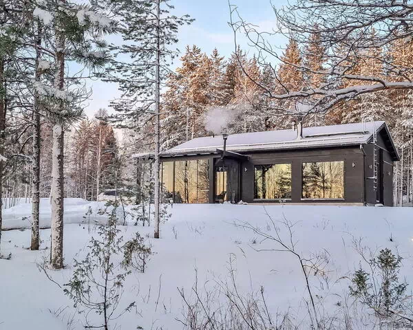 Bright and modern cabin built in 2023, located on the shore of Lake Kitkajärvi, offering a cozy setting for a holiday in the heart of nature. The cabin has one bedroom with a double bed and an adjoining sleeping alcove with two mattresses, and another bedroom that doubles as a workspace with a sofa bed for two. This layout makes the cabin a practical choice for both families and couples.