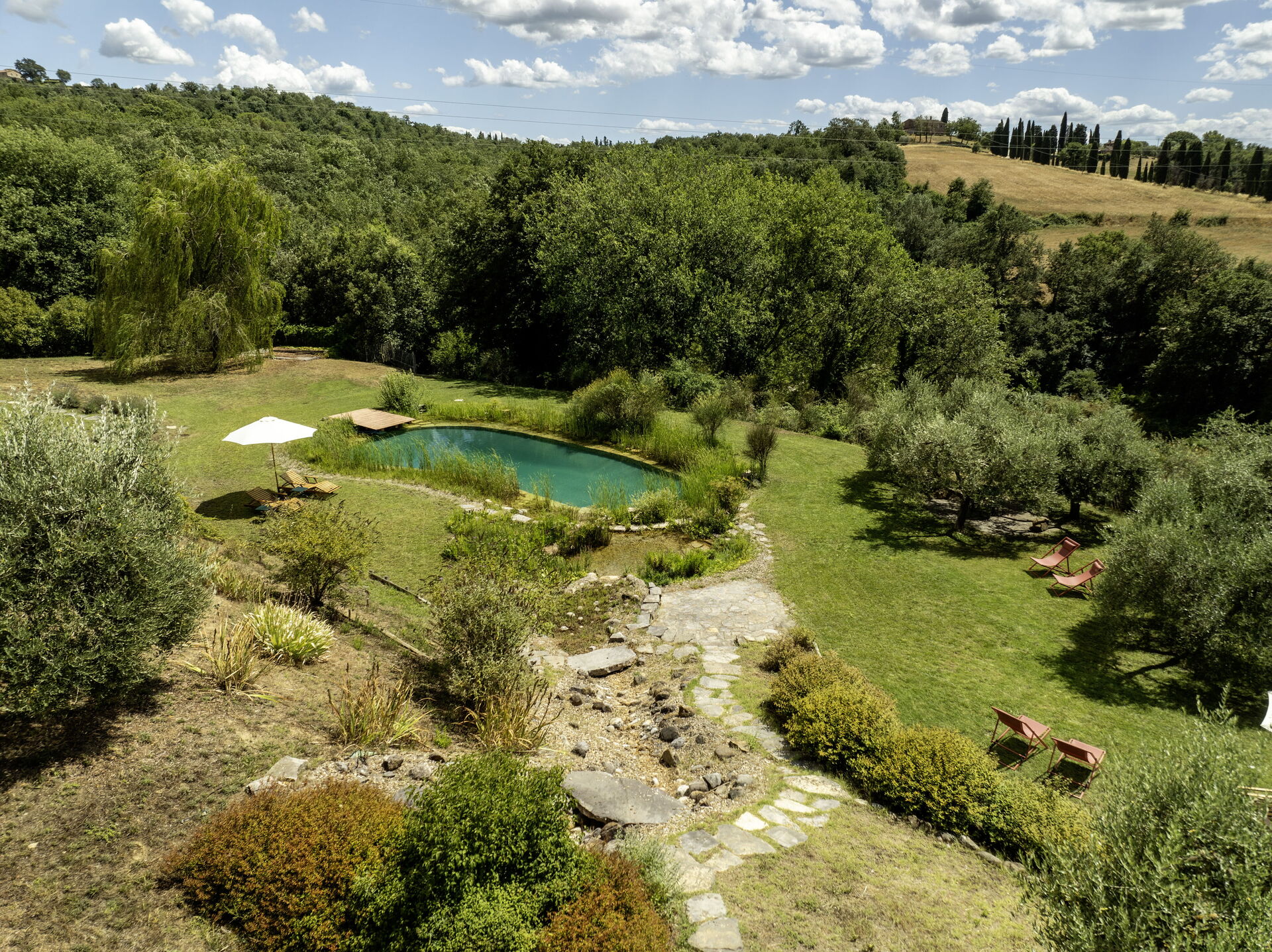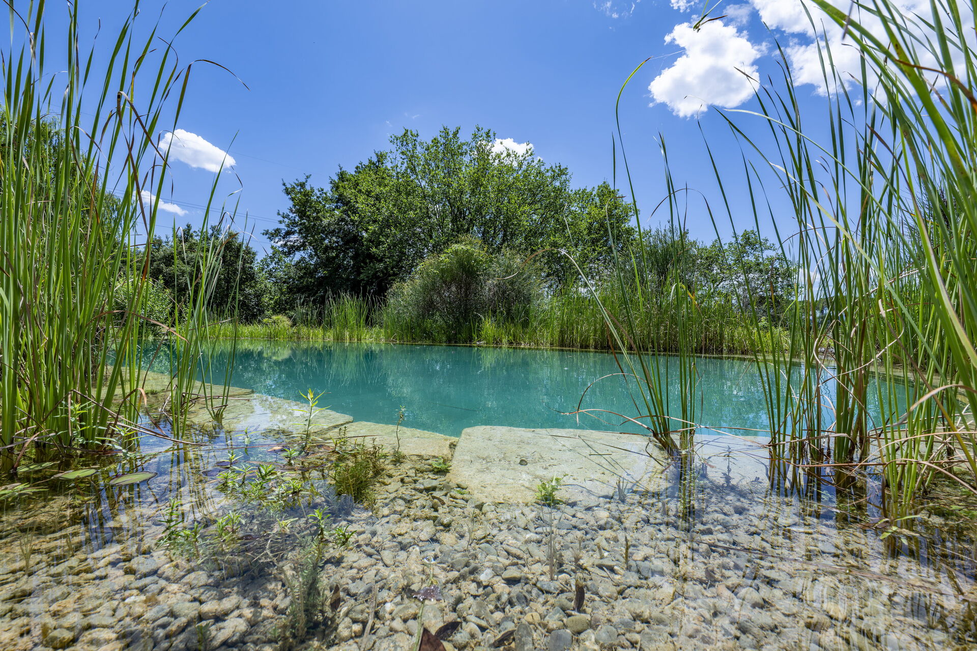 Der Garten beherbergt auch einen exklusiven Öko-Pool, der den Gästen zur Verfügung steht. Inspiriert von den Selbstreinigungsmechanismen natürlicher Seen, verwendet er im Gegensatz zu herkömmlichen Schwimmbädern kein Chlor oder andere chemische Mittel zur Wasserreinigung, sondern ein biologisches System, das auf Wasserpflanzen und Mikroorganismen basiert.