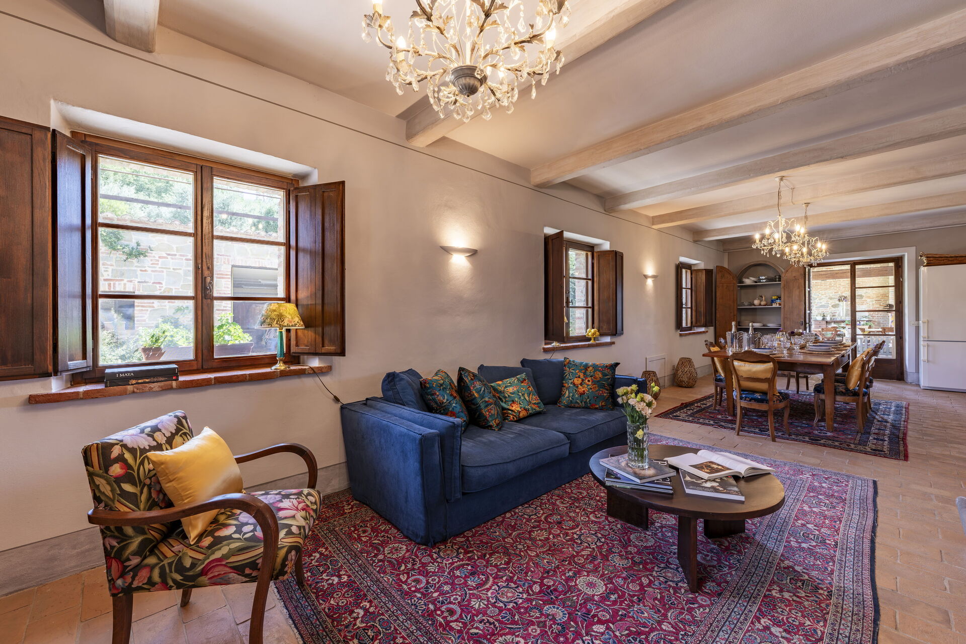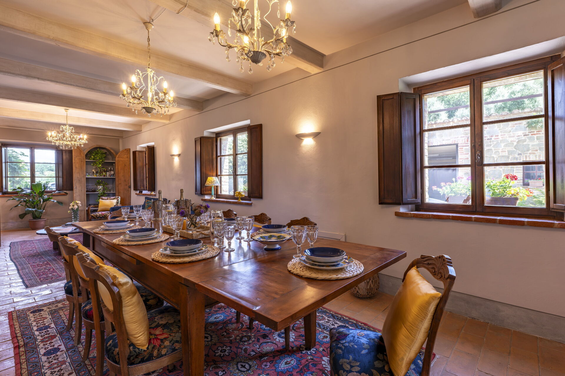 Wohnzimmer: Sofa, Esstisch (Personen: 9), WiFi Internet, Ausgang auf die Veranda.