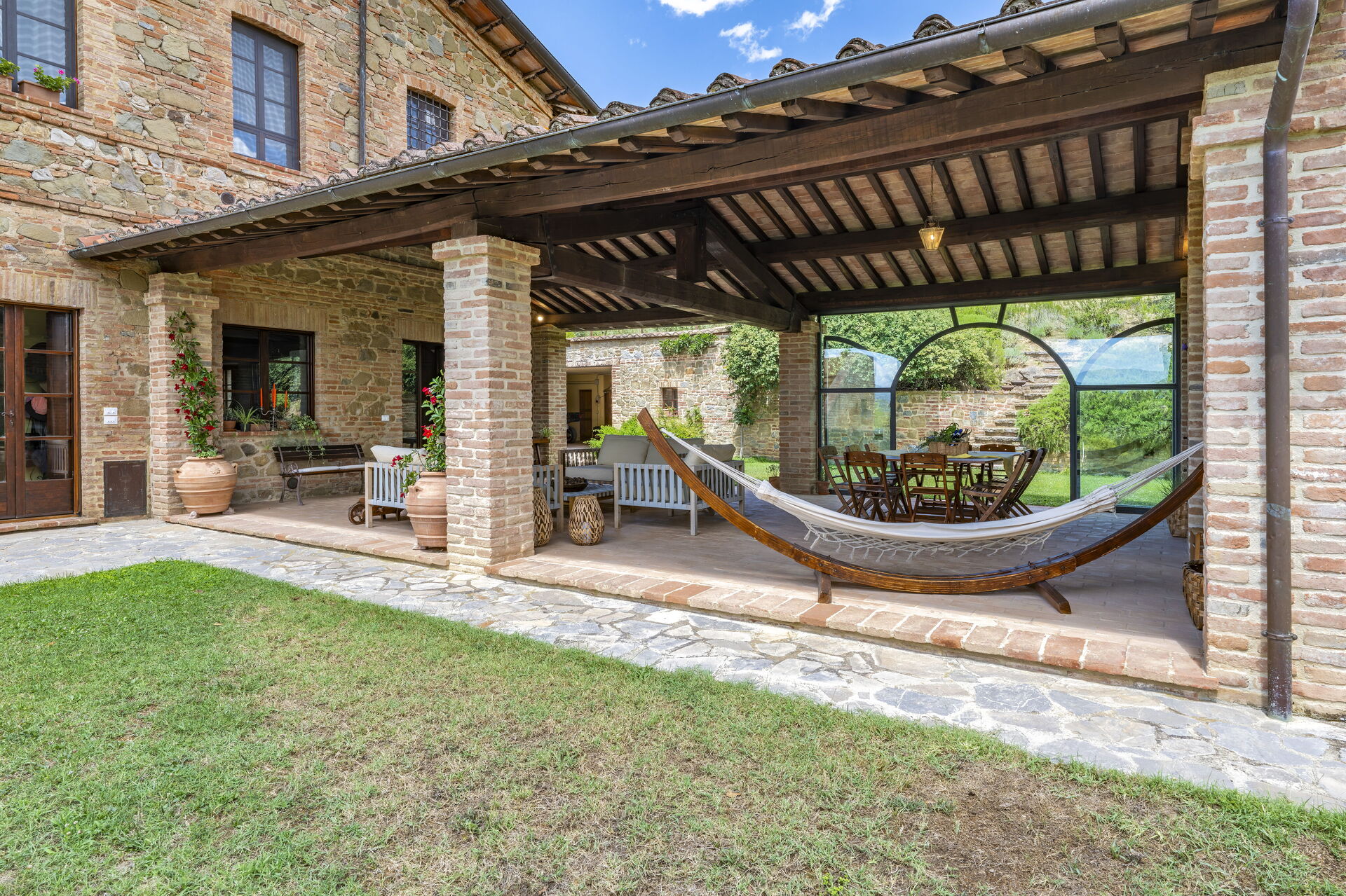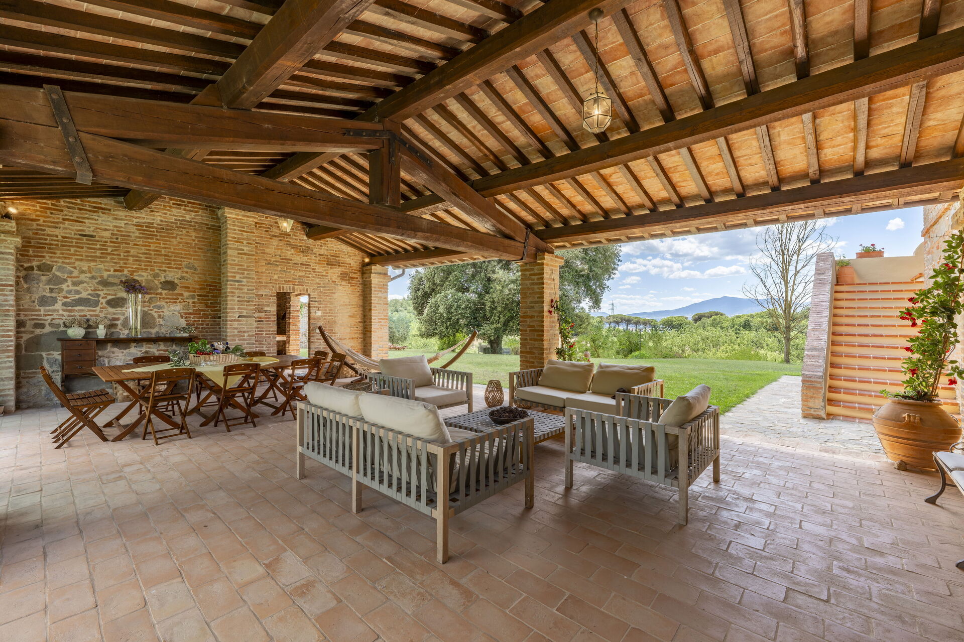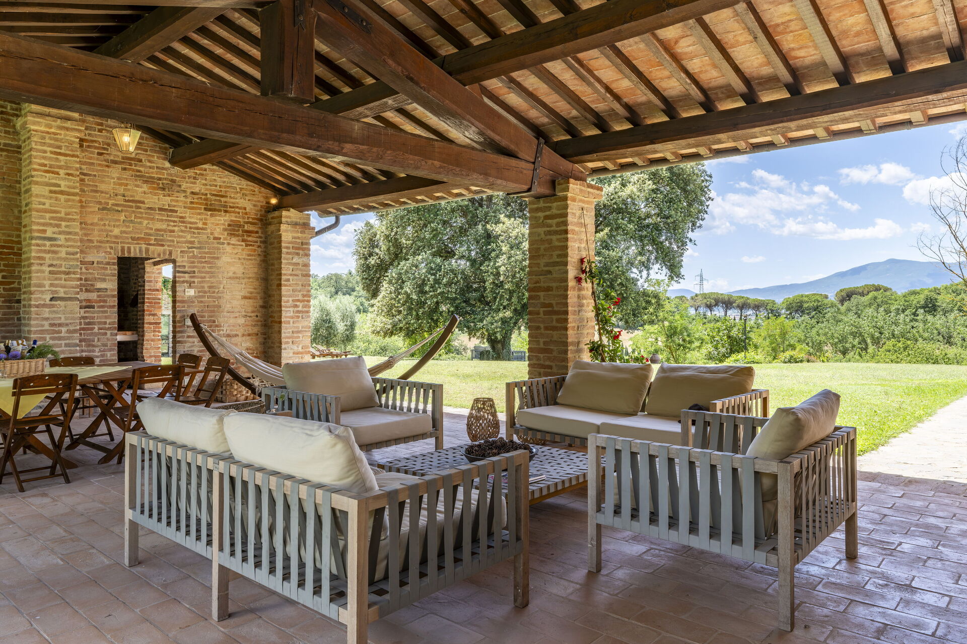Veranda: Außenbereich für das Essen im Freien, Esstisch (Personen: 9), WiFi Internet, Grill, Gartenmöbel.