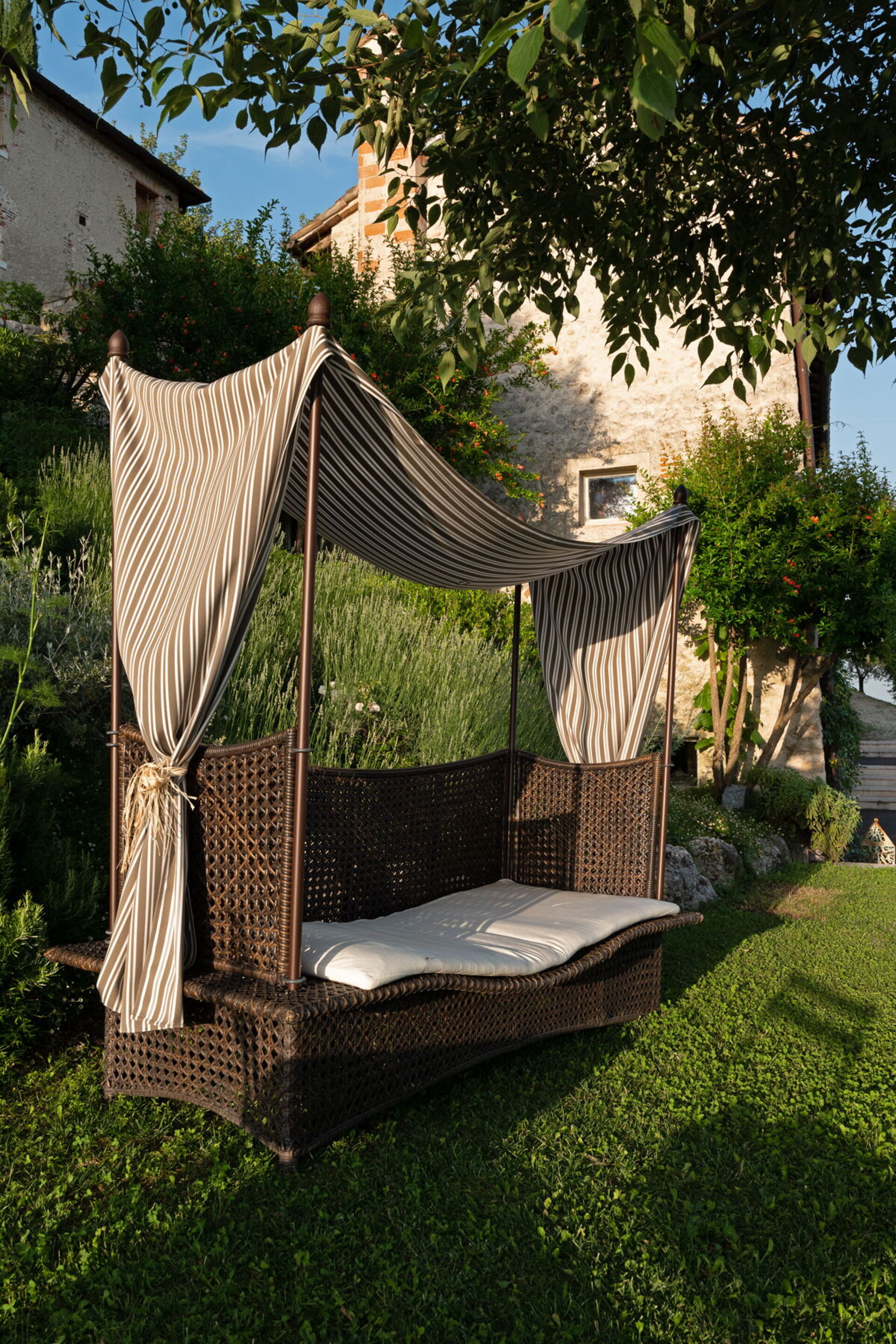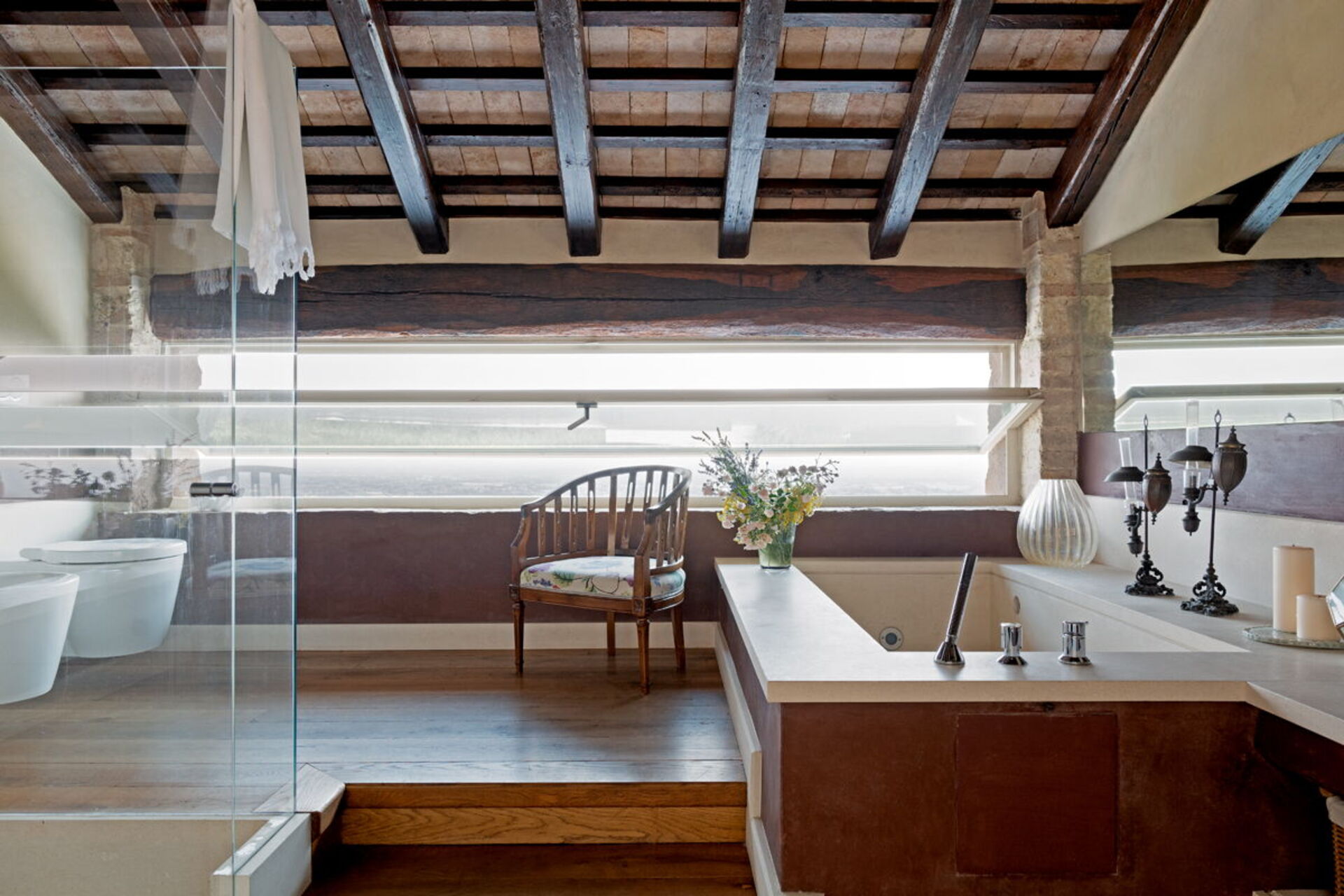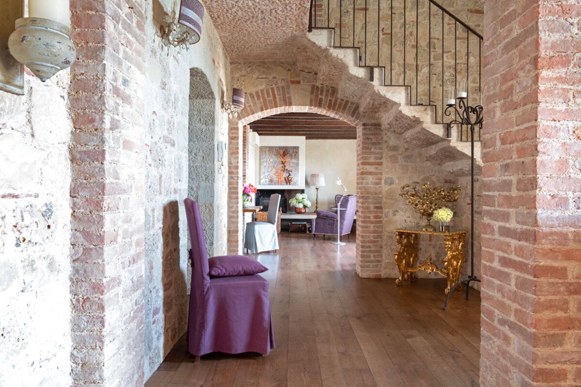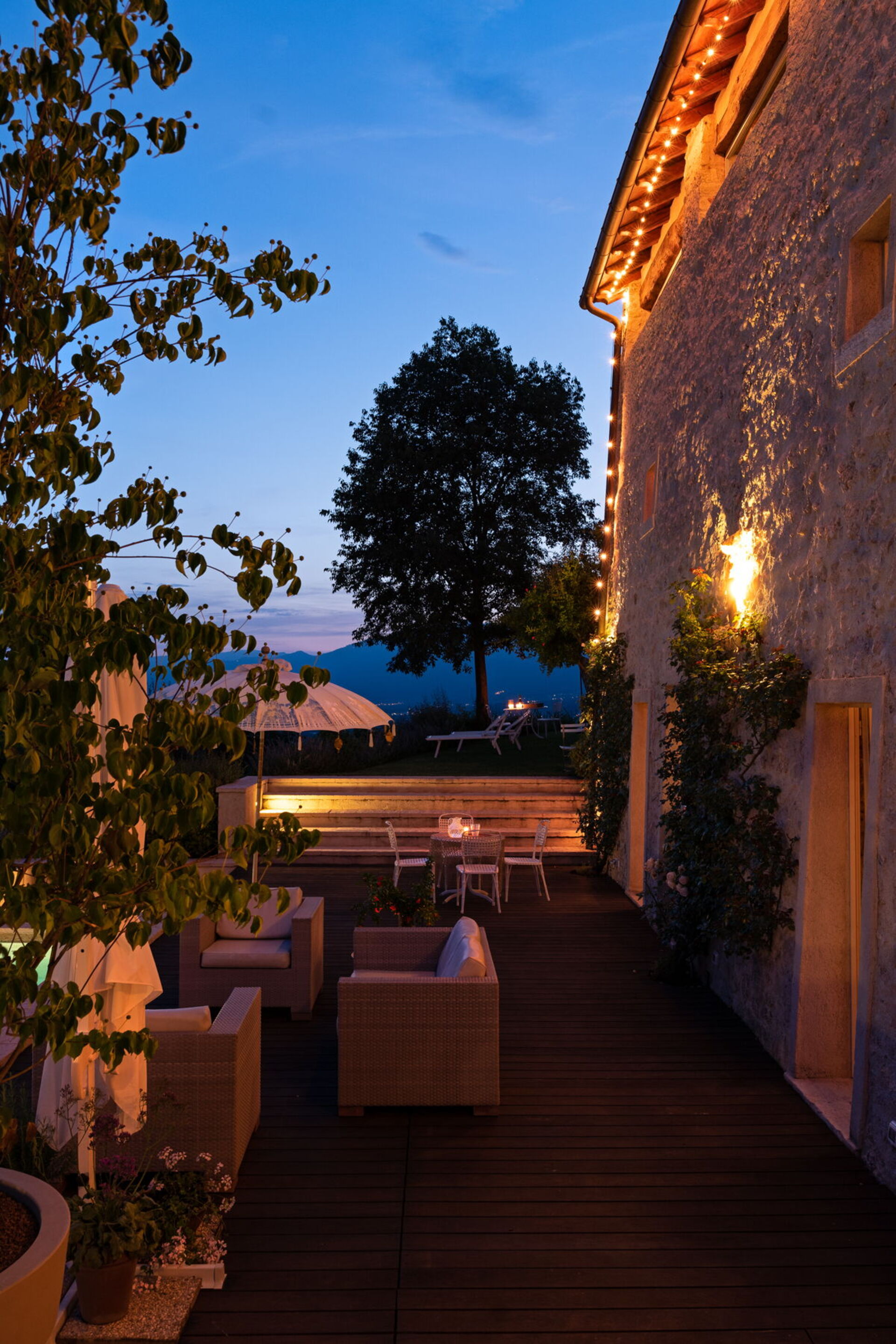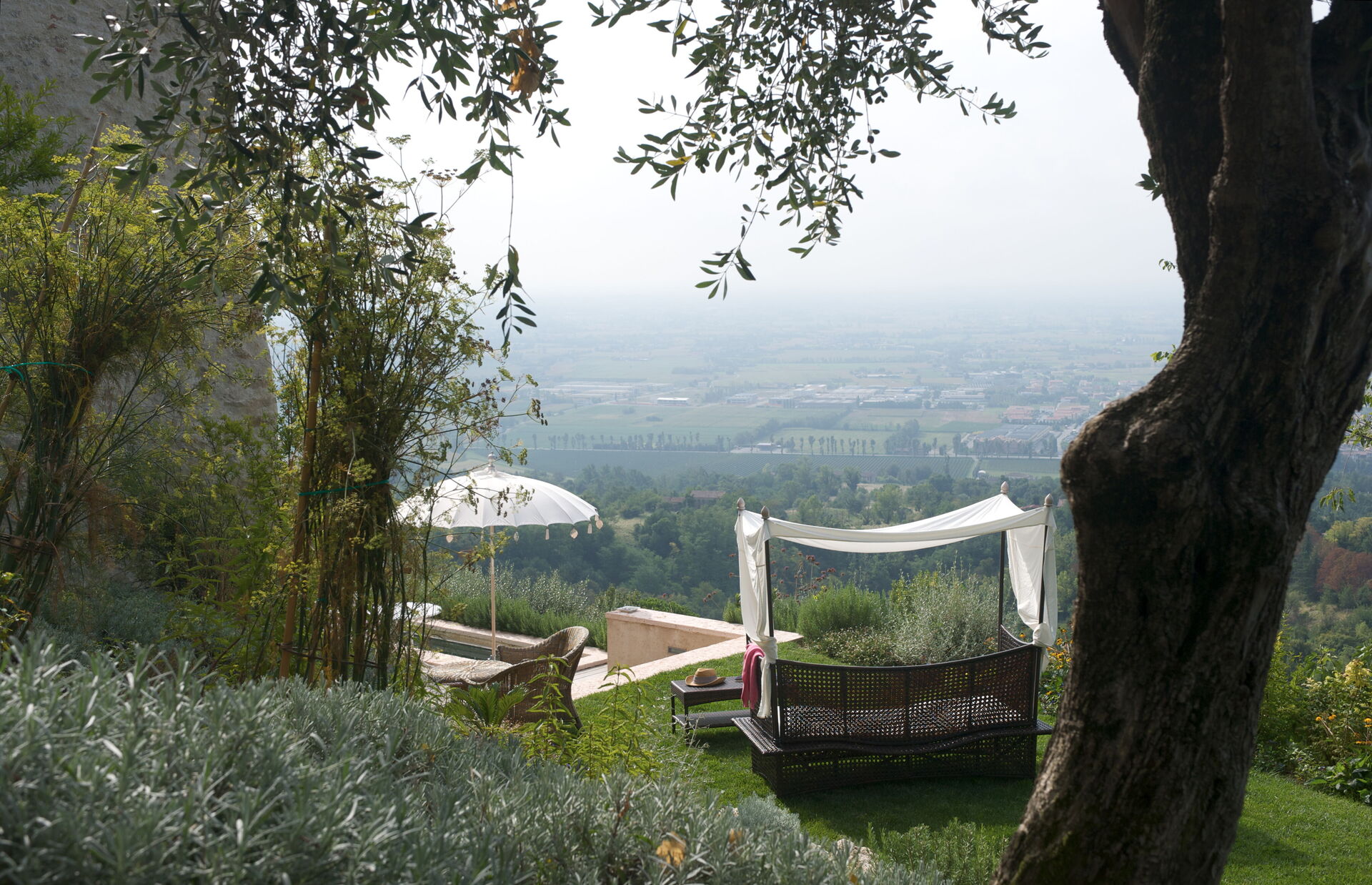 Die Außenbereiche dieser Unterkunft sind wirklich bemerkenswert und nutzen die spektakuläre Lage auf der Hügelspitze voll aus. Sie finden einen privaten Swimmingpool, an dem Sie entspannen können, während Sie die atemberaubende Aussicht bewundern. Die Panoramaterrasse ist mit komfortablen Gartenmöbeln ausgestattet und bietet einen idealen Raum für Mahlzeiten im Freien und geselliges Beisammensein, während Sie den weitläufigen Blick über die Landschaft genießen. Das ausgedehnte Grundstück von 5 Hektar bietet reichlich Platz für gemütliche Spaziergänge und vollständige Privatsphäre, sodass Sie vollständig in die friedliche Umgebung der Landschaft von Asolo eintauchen können.