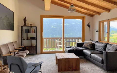 4 der 5 Schlafzimmer haben Bergblick - und das einzige Geräusch, das Sie nachts hören werden, sind vielleicht Kuhglocken. Der große, offene Ess-/Sitzbereich lädt zum gemütlichen Beisammensein mit bis zu 10 Personen an einem Tisch ein - oder verteilt auf den Raum und den Balkon/Terrasse.