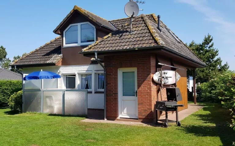 Das ruhige Ferienhaus auf Föhr liegt am Südstrand der Insel im Ortsteil Goting von Nieblum, unweit des Goting Kliff, 7 km von Wyk entfernt. Bis zum Strand geht man nur ca. 150 m.Vom ausgebauten Dachgeschoss hat man einen herrlichen Blick Richtung Südstrand und auf die Insel Amrum.Hunde dürfen mitgebracht werden. Ihr Aufenthalt ist aber nur im Erdgeschoss gestattet. Bitte Hunde bitte bei der Buchung mit angeben.Das Haus ist ein NichtraucherhausZum Haus gehören im Erdgeschossein ca 25m² großes, komplett eingerichtetes Wohnzimmerein Schlafzimmer mit 2 getrennt stehenden Betten und eingebauten Schränkenein Bad mit Dusche und Fön und ein separates WC,eine Küchenzeile mit E-Herd, Backofen, Grill, Geschirrspüler und Kühlschrank mit ***Gefrierfach. Ein Toaster und ein Heißwasserkocher sind ebenfalls vorhanden.Eine Waschmaschine zur kostenlosen Nutzung befindet sich in einem separaten, abschließbaren Wirtschaftsraum.Das Ferienhaus ist über W-LAN an das Internet angebunden. Dieser Zugang ist für Sie ebenfalls kostenlos.Im ausgebauten Dachgeschoss – rund 50 m² – befinden sich 2 Betten, Farbfernseher mit Satellitenempfang, Stereoanlage und ein DVD-Player.Das Haus ist komplett eingerichtet. Geschirr, Gläser, Bestecke sowie Küchenutensilien sind ausreichend vorhanden.Bettwäsche, Handtücher und Küchentücher sind bitte mitzubringen. Es kann jedoch vorab ein Wäschepaket optional beim Vermieter bestellt werden.Das Haus hat Gasheizung, fließend warmes und kaltes Wasser.Vom Wohnbereich kann man direkt auf die windgeschützte Terrasse treten.Das Ferienhaus liegt auf einer 500 m² großen Rasenfläche. Sie ist durch eine Thuja-Hecke vor Blicken von außen geschützt. Ihren Pkw können Sie auf dem Grundstück hinter dem Haus abstellen.Gartenmöbel und Fahrräder, die auf eigene Gefahr benutzt werden können, befinden sich in einem abschließbaren Abstellraum direkt am Haus.