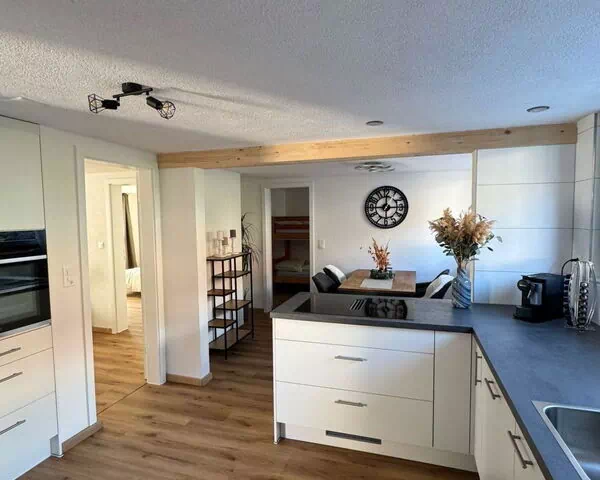 61 m2. Weitere Angaben des Anbieters: Willkommen in unserer gemütlichen, hellen und modernen 3 1/2-Zimmerwohnung an zentraler Lage. Unsere gemütliche 3 1/2-Zimmer Wohnung ist die perfekte Wahl für einen erholsamen Urlaub in den Schweizer Alpen. Die Einrichtung bietet einen angenehmen Wohlfühlfaktor und die Küche hat alles was man im Urlaub und zum lecker kochen braucht. Geniessen Sie die traumhafte Lage und die vielfältigen Ausflugsmöglichkeiten in der Region. Lassen Sie sich von der Schönheit der Schweizer Berge verzaubern und erleben Sie unvergessliche Momente. Im gemütlichem Wohnzimmer gibt es einen 4K Smart-TV und WLAn. Unsere moderne und gut ausgestattet Küche mit Induktions Herd, Backofen, Geschirrspühler, Kühlschrank, Gefrierschrank, Raclette Ofen, Fondue Caquelon, Toaster, Wasserkocher und einer Nespresso-Kaffeemaschine mit Milchschäumer ( Pro Person werden Kapseln zur Verfügung gestellt) und ein Soda Stream. Ein grosses Sofa im Wohnzimmer sowie ein Schlafzimmer mit einem Doppelbett (180cm breit), das zweite Schlafzimmer hat ein Etagenbett (90cm breit). Auf Wunsch kann ein Babybett bereitgestellt werden sowie auch ein Kinder Hochstuhl (bitte voranmelden). Unsere Wohnung befindet sich mitten im Zentrum von Frutigen an perfekter Lage. In nur 3 Gehminuten vom Zentrum entfernt, geniessen Sie hier eine ruhige und sonnige Lage, die Erholung und Entspannung verspricht. Einkaufsmöglichkeiten wie Coop und Migros oder leckere Restaurants erreichen sie in weniger als 5 Gehminuten. Schwimmbad, Freizeitbad im Sommer, Seilpark und Minigolf Anlage erreichen Sie in weniger als 10 Gehminuten. Die Wohnung ist gut an die öffentlichen Verkehrsmittel angeschlossen. Die Busstation ist in nur 2 Gehminuten entfernt und der Bahnhof Frutigen in ca. 10 Minuten. Die Lage der Wohnung ist ideal. Du kannst dich auf tolle Wanderungen und Ski Ferien im Berner Oberland freuen. Das Kandertal wird von den majestätischen Bergen Niesen, Gerihorn, Elsighorn, Blüemlisalp, Balmhorn, Altels umrahmt. In unmittelbarer Nähe können Sie zudem die berühmten Gipfel Eiger, Mönch, Jungfrau und Schilthorn bewundern. Bei uns geniessen Sie die Vorteile der Gästekarte und fahren im gesamten Gebiet kostenlos mit dem Bus und Teils mit dem Zug. Zudem profitieren Sie von einigen Vergünstigungen bei Bahnen, Sportanlagen sowie Sehenswürdigkeiten. Badezimmer mit Badewanne und WC. Aussen Parkplatz vorhanden. Nichtraucherwohnung. Wichtie Information: Sollte die Wohnung in desaströsem Zustand ( Müll, geflutetes Badezimmer, dreckige Küche etc. ) hinterlassen werden, wird die Reinigung nach Aufwand verrechnet.