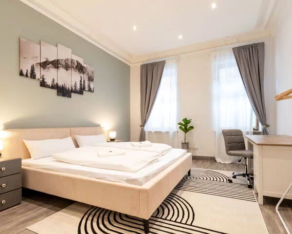 Die Wohnung befindet sich in einem historischen, gepflegten Gebäude und vereint den Charme alter Zeiten mit der Moderne.