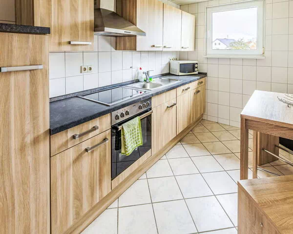 "Helfrichs Ferienwohnung", 5-Zimmer-Wohnung im Dachgeschoss. Objekt geeignet für 4 Erwachsene. Geräumig, abgeschrägt, renoviert im Jahre 2025: Dachgeschoss: abgeschrägtes Wohn-/Esszimmer mit Esstisch und TV. 2 Zimmer, jedes Zimmer mit 1 Bett (100 cm, Länge 200 cm). 1 Zimmer mit 1 Doppelbett (2 x 100 cm, Länge 200 cm). Küche (Backofen, Geschirrspüler, 4 Glaskeramikplatten, Toaster, Wasserkocher, Mikrowelle, elektrische Kaffeemaschine). Bad/Dusche/WC. Ölheizung. Zur Verfügung: Waschmaschine (extra). Internet (WLAN, gratis). Parkplatz (2 Autos) beim Haus. Bitte beachten: Nichtraucher-Haus. Rauchmelder, kein Fahrstuhl.
