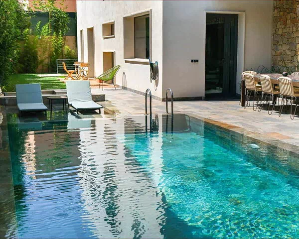 Villa Habiba ist eine spektakuläre zeitgenössische Villa mit einer Gesamtfläche von 450 m² in Marrakesch, Marokko. Das Anwesen verbindet moderne Eleganz mit raffiniertem Wohlbefinden und eignet sich für Familien, Freundesgruppen und exklusive Rückzugsorte. Die Villa verfügt über einen wunderschön gestalteten Garten, der Privatsphäre und Ruhe gewährleistet, sowie über einen beeindruckenden Infinity-Pool. Das Interieur kombiniert Luxus und Komfort mit einem geräumigen, lichtdurchfluteten Wohnzimmer, das nahtlos zum Poolbereich übergeht, einer modernen offenen amerikanischen Küche mit hochwertigen Geräten und einer zweiten professionellen Küche im Untergeschoss für Veranstaltungen oder einen privaten Chef. Die Villa bietet insgesamt 4 Suiten: 2 im Erdgeschoss mit jeweils privater Terrasse und privatem Bad, sowie 2 im ersten Obergeschoss mit privatem Bad und Zugang zu großzügigen Terrassen. Weitere Highlights sind ein privates Fitnessstudio, ein Kinoraum, ein traditionelles Hammam, ein Massageraum mit Entspannungslounge und eine moderne Sauna.