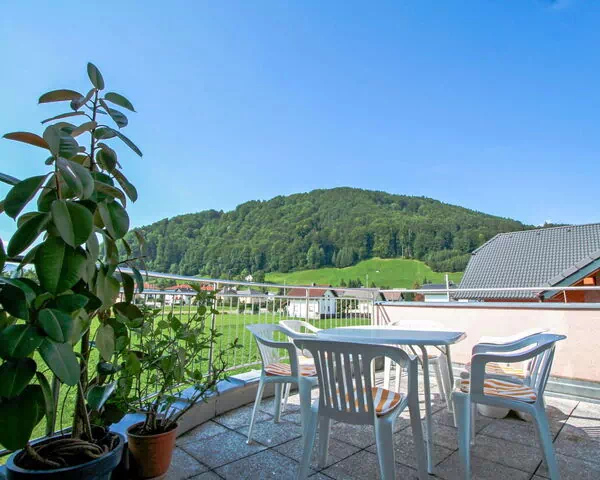 4-Zimmer-Wohnung 120 m2 im 1. Stock. Komfortabel und geschmackvoll eingerichtet: offenes grosses Wohnzimmer mit Panoramafenster mit 1 Doppeldiwanbett und Kabel-TV (Flachbildschirm), Radio und DVD. Ausgang zur Terrasse. 1 Doppelzimmer. 1 Zimmer mit 2 Betten. 1 Zimmer mit 1 x 2 Etagenbetten. Offene Küche (4 Kochplatten, Backofen, Geschirrspüler) mit Esstisch. Sep. WC, Bad/Dusche/WC, Doppelwaschbecken. Grosse Terrasse. Terrassenmöbel, Abstellkammer. Schöne Sicht auf die Landschaft. Zur Verfügung: Waschmaschine. Internet (WLAN, gratis). Neu ab 2018: Bei Buchungen ab 3 Nächten erhalten Sie die Salzkammergut-Card GRATIS! (Verfügbarkeit wechselnd). 40714